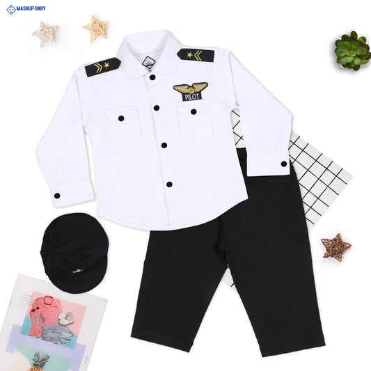 Sky-High Style: Pilot Shirt, Pants, and Cap Set!