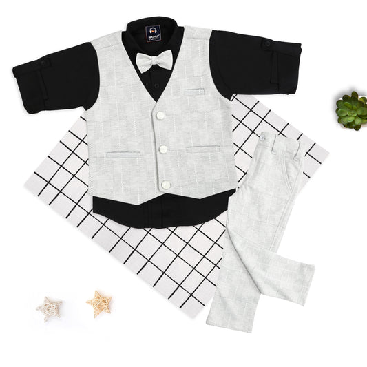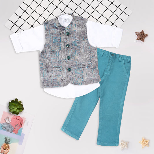 Chic Prints: Textured Waistcoat Shirt Pant Set for Little Trendsetters