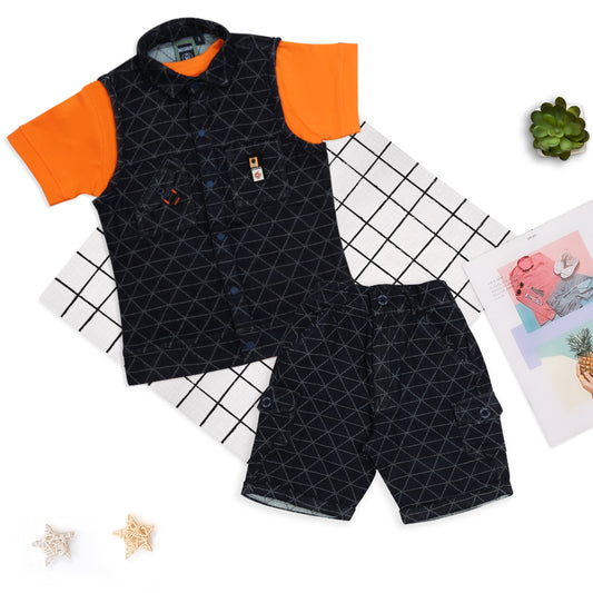 "Summer Cool: Sleeveless Shirt, Fun T-Shirt, and Shorts Set!"