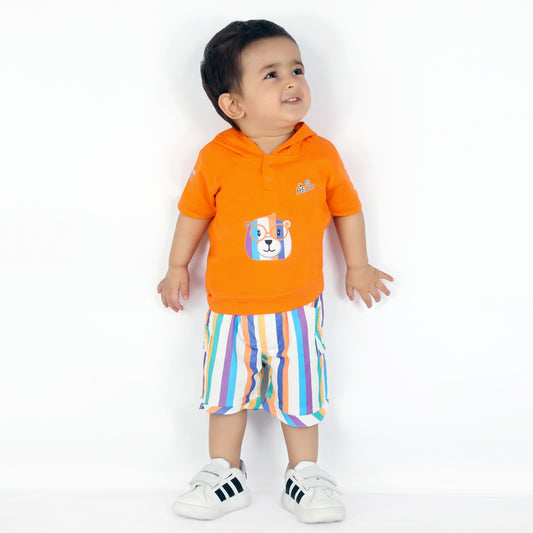 "Stripe Up The Fun: Cool Tee and Shorts Combo Delight!"