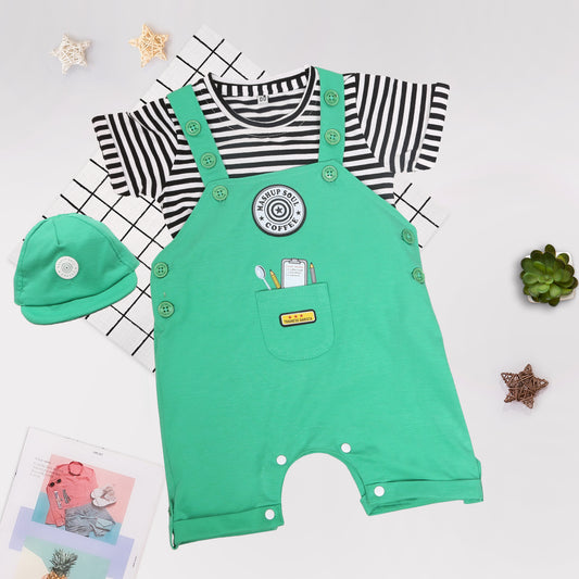 Baby Barista: Coffee-Inspired Dungaree, T-Shirt, and Cap Set!