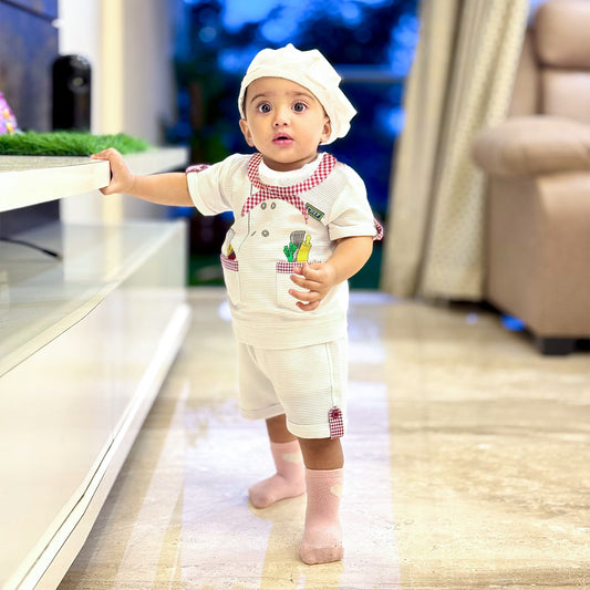 Mini Chef Magic: T-Shirt, Shorts, and Chef Cap Set!