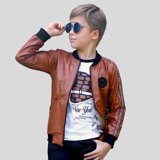 Superior PU leather jacket + matching T-shirt for the racer Boy.