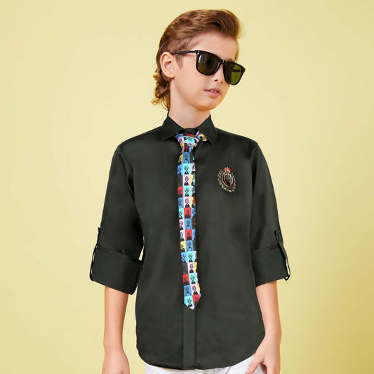 Sharp and Stylish: Solid Shirt with Funky Printed Tie Combo!