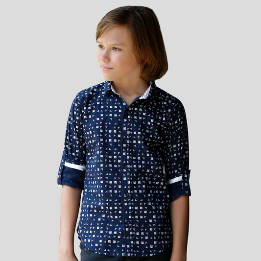 MashUp Stylish Classic printed dobby cotton shirt for Young boys