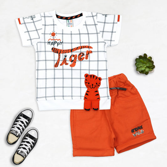 Roar into Fun: Tiger-Printed T-Shirt + Shorts Set for Boys!