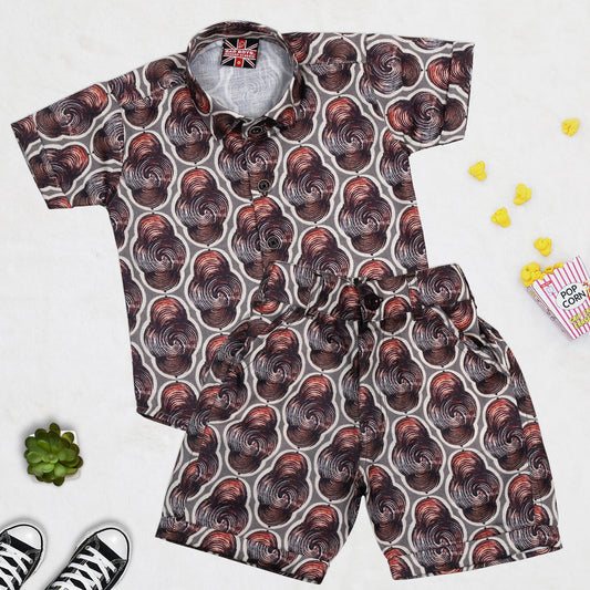 Royalty Brown Print Shirt and Shorts Superior Linen Co-ord Set for Boys!