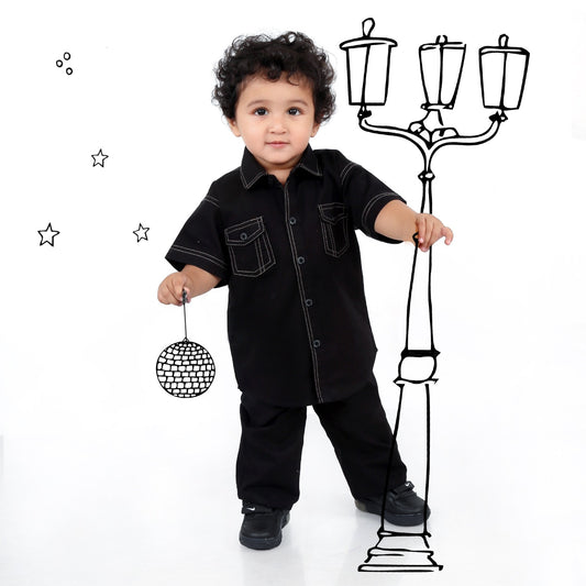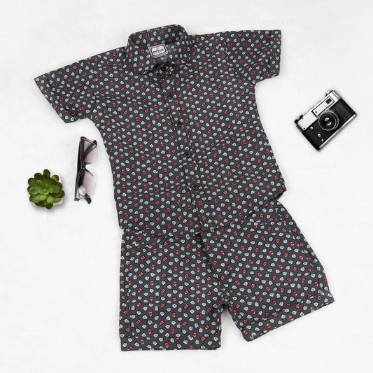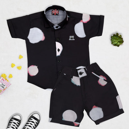 Royalty Black Print Shirt and Shorts Superior Linen Co-ord Set for Boys!