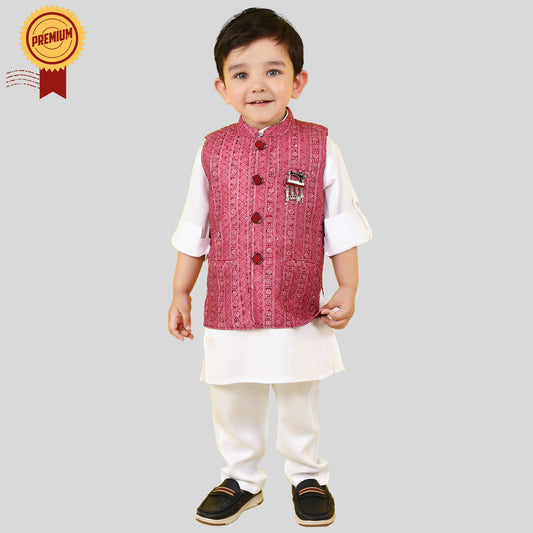 Little Legends Shine: Plain Kurta + Designer Waistcoat + Pajama!