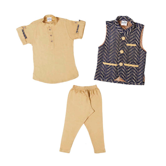 Bad Boys Jacquard Nehru Jacket with Khaki Kurta & Payjama