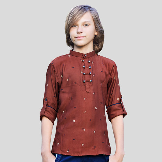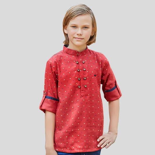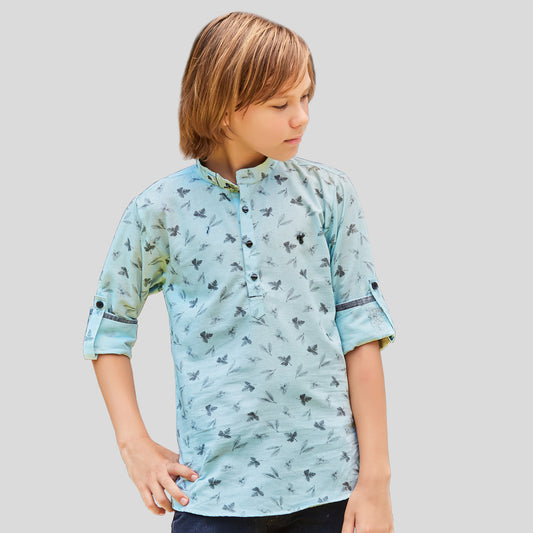 Fashionable Printed Cotton Dobby Kurta For Young Boys.