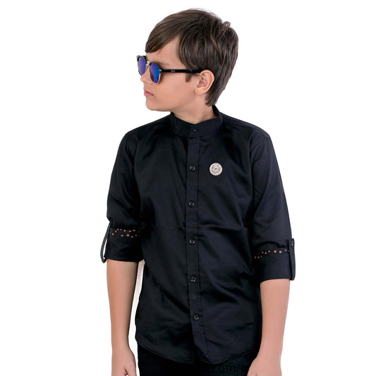 Stylish black self-textured Nehru jacket and polka dot print shirt.