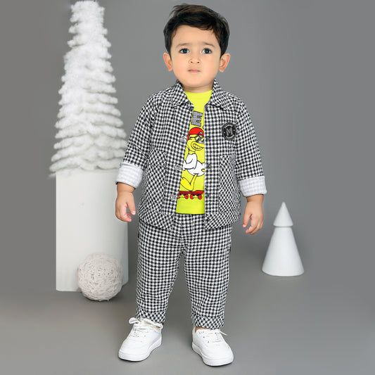 Stylish Checks Jacket, Printed Tee & Joggers: Casual Cool