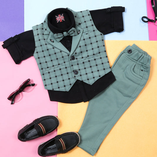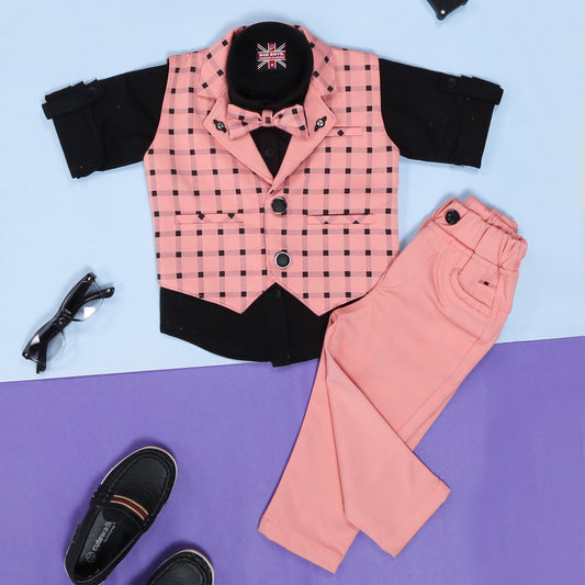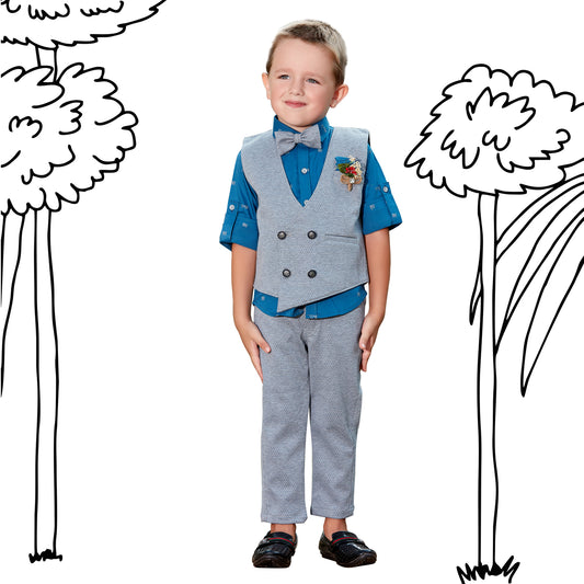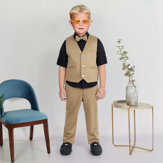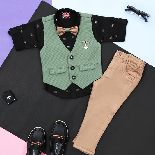 Dapper Kiddos Unleashed: Shirt, Designer Vest, Pant, Bow - Party Power!