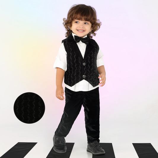 BAD BOYS Velvet Embroidered Waistcoat,Cotton Shirt,Pant & Bow Set.