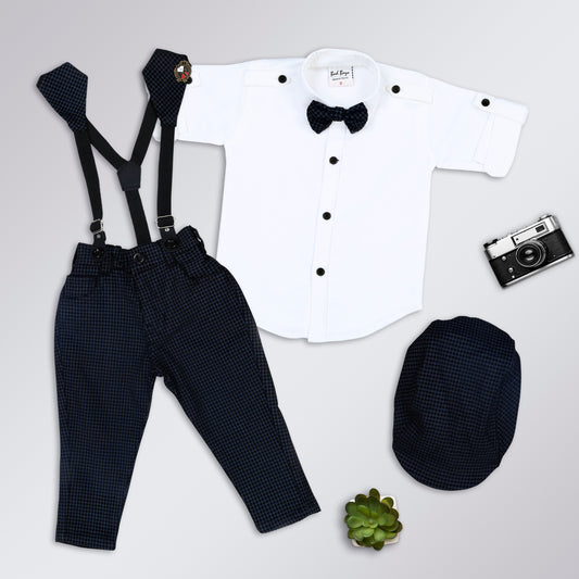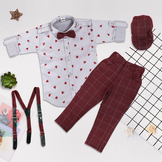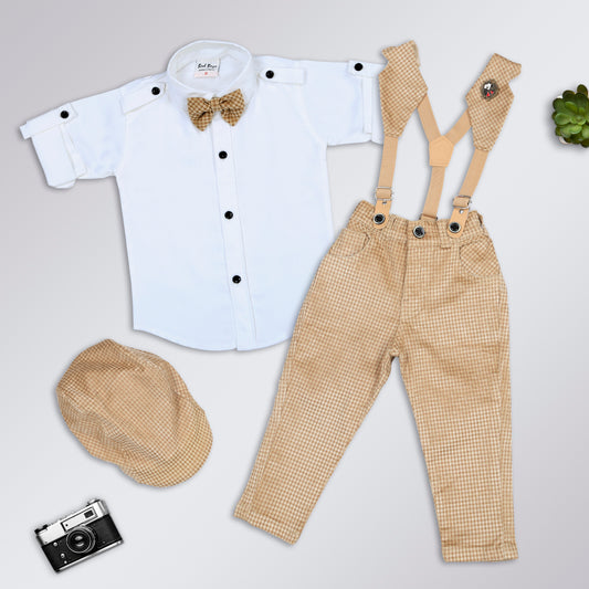 Little Gents' Fiesta: Shirt, Pant, Bow, Suspender, Cap - Party Ensemble!