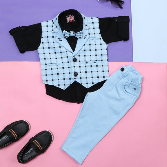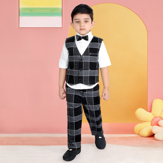 Check-Mate Fun: Shirt, Checked Waistcoat, Pant, Bow - Mini Party!
