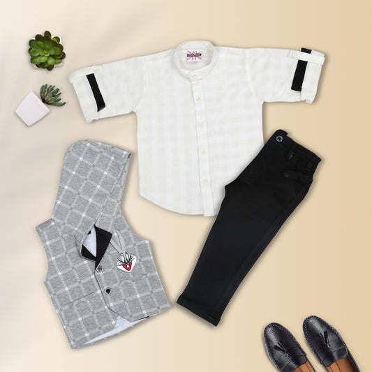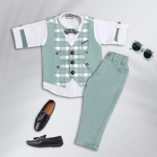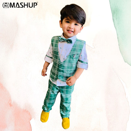 Check-Mate Fun: Shirt, Checked Waistcoat, Pant, Bow - Mini Party!