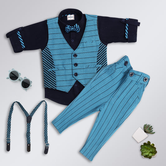 Striped Spectacle: Shirt, Striped Waistcoat, Pant, Suspender, Bow - Party Magic!