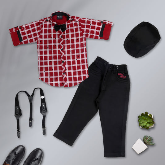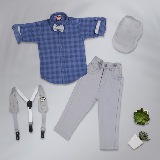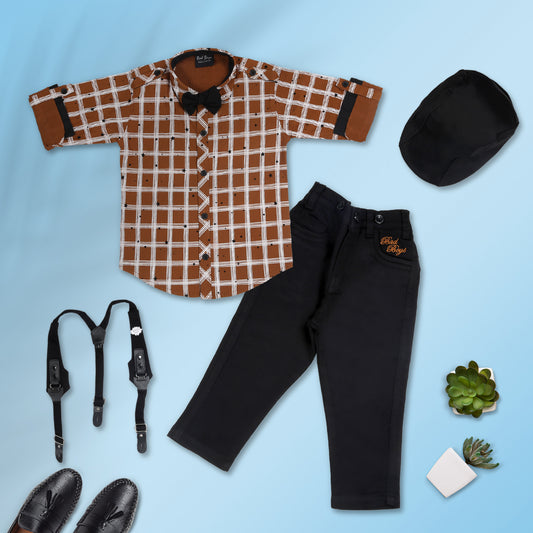 Checkered Charm: Shirt, Suspenders, Pants, Bow, Cap - Fun Everywhere!