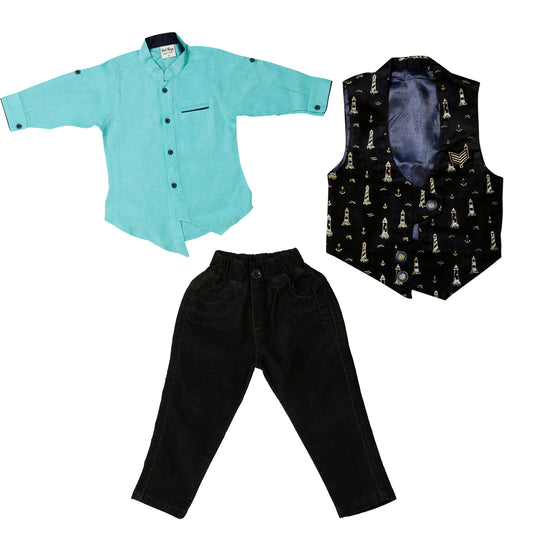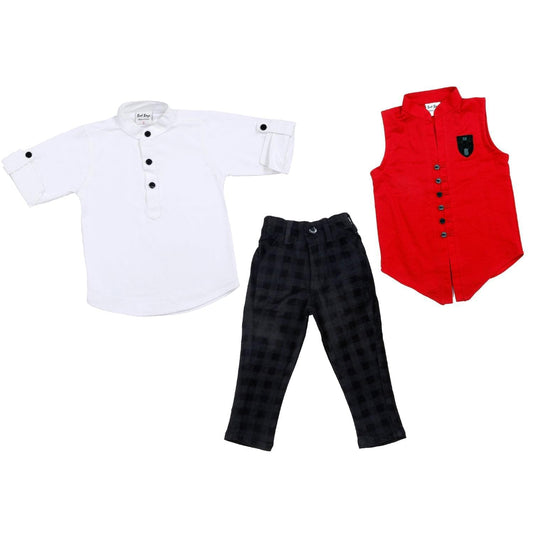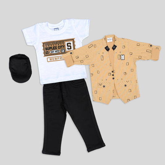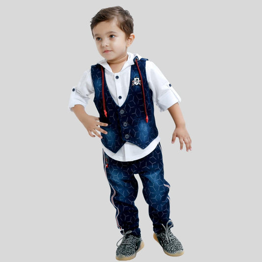 Cool & Classy Outfit comes with Hoodie Shirt, Waistcoat & Bottoms.