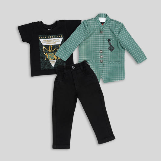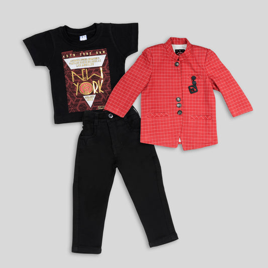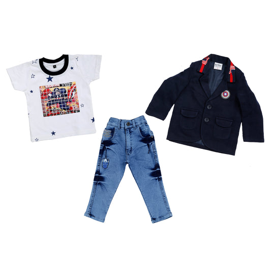 Party Wear Set With Blazer, T-shirt & Bottoms.