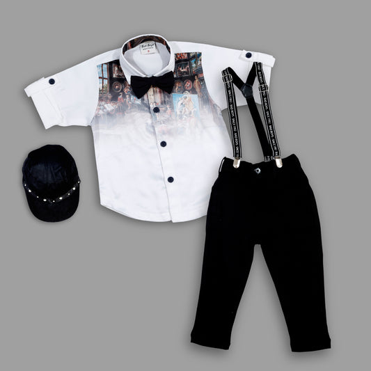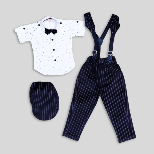 Plaid Party wear Outfit with Suspenders and wooden bow tie.