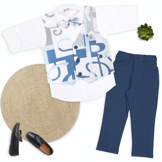 Smart Shirt, Printed Waistcoat, Pants & Bow: Boys’ Party Perfection