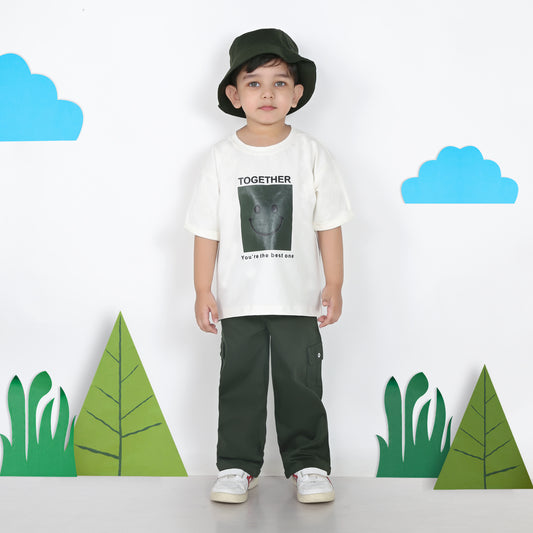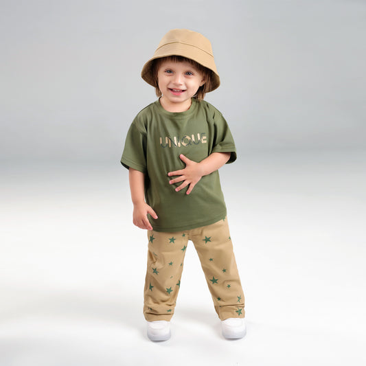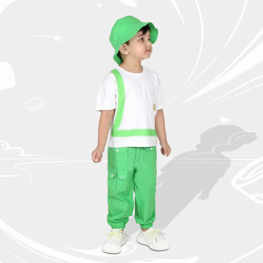 "Cool Vibes Only: Printed Tee, Jogger & Cap Trio Set!"