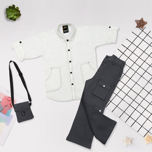 Adventure Awaits: Stylish Shirt, Baggy Bottoms, and Bag Set!