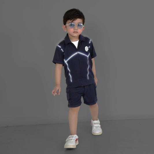 Summer Streetwear Half Jacket T-Shirt shorts set (pack of 3) with reflective print detailing