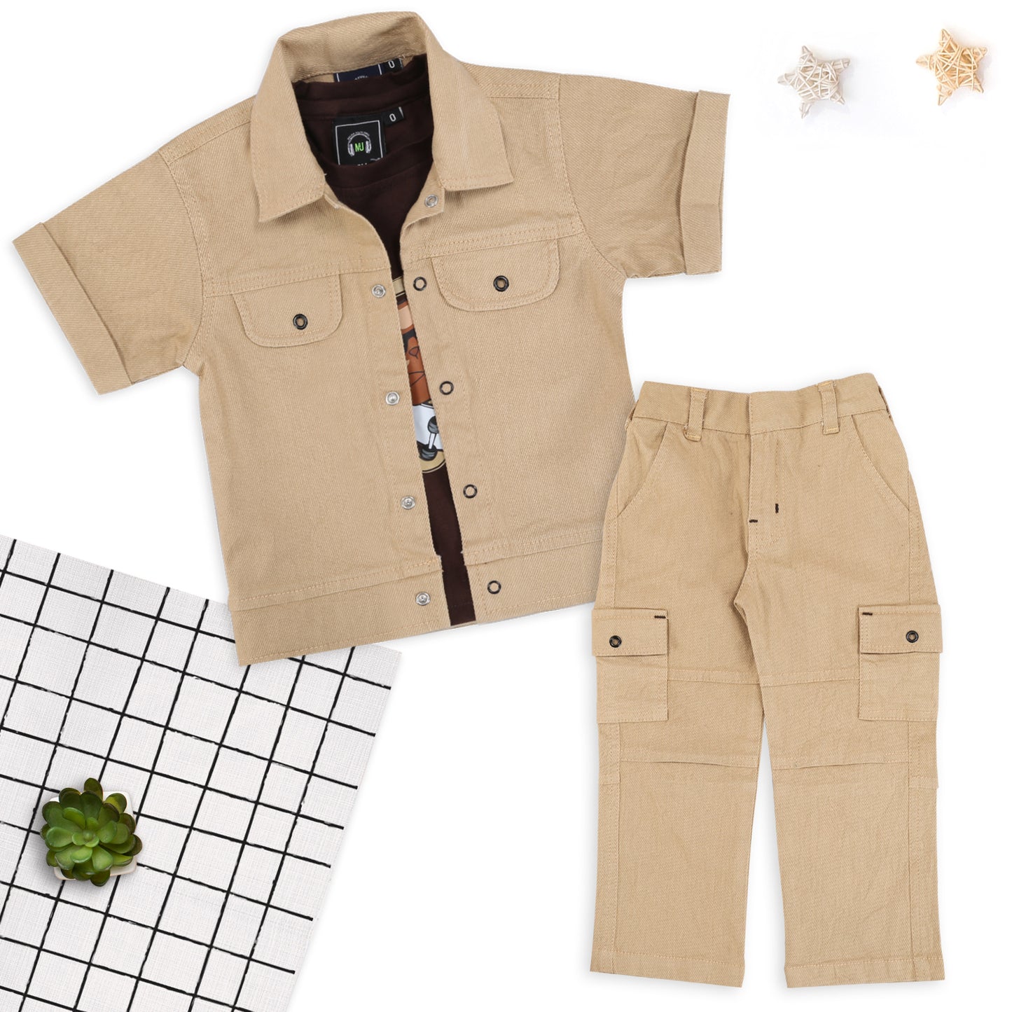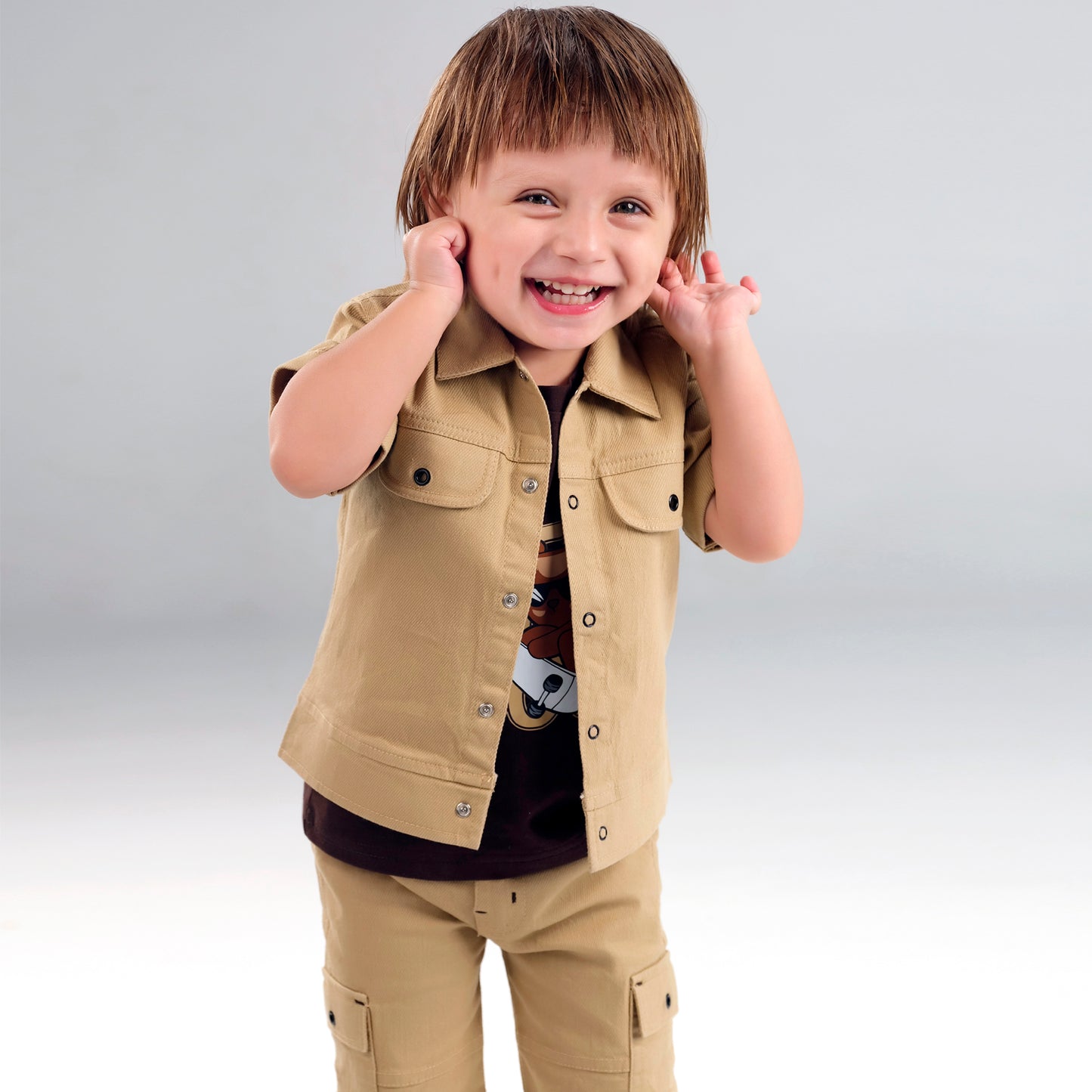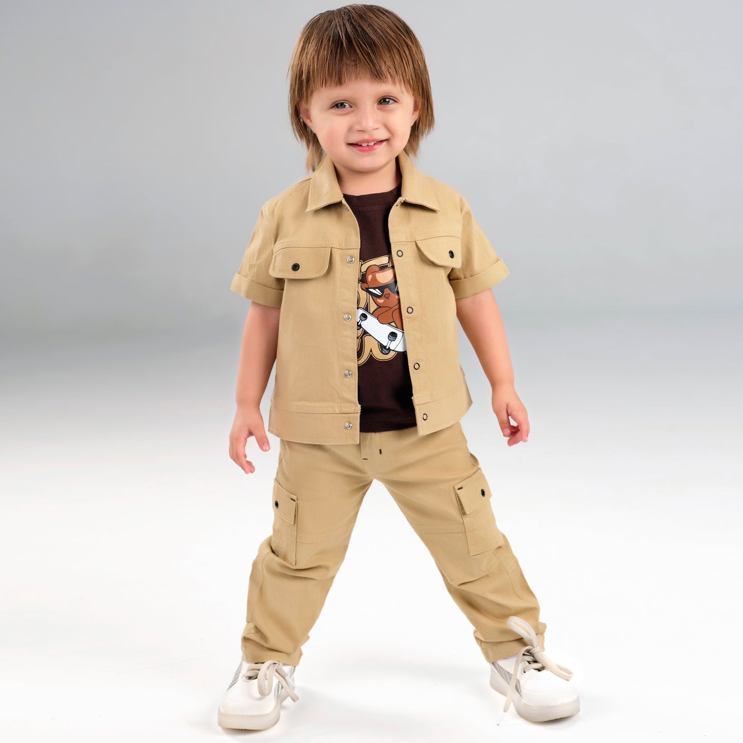 Get your little explorer all geared up in this 3-piece style statement! Featuring a cool jacket, a playful printed inner T-shirt, and perfectly paired pants, this set is made for action-packed casual outings. Whether it’s a stroll through the city or a family get-together, your kid’s going to turn heads. The printed tee adds personality, the jacket brings the cool, and the pants seal the comfort deal. Designed for kids who love to move, groove, and make a statement without saying a word. Stylish, comfy, and totally unique—this outfit is a triple win for mini fashion icons!