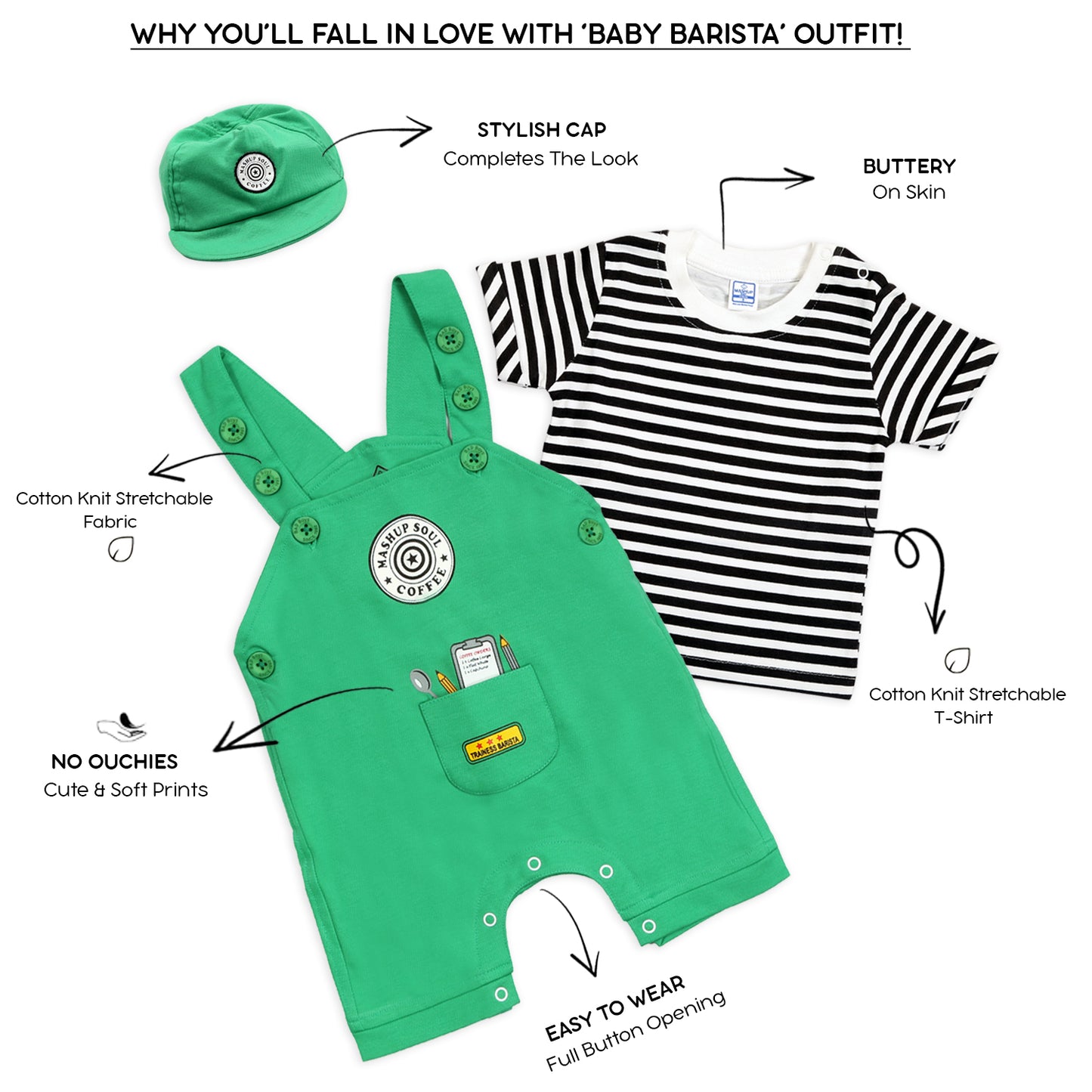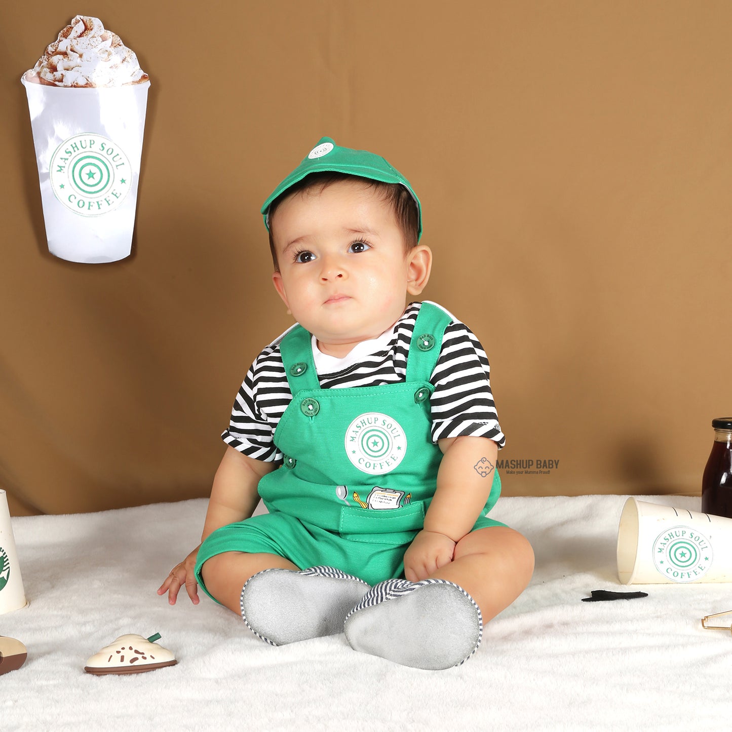 Baby Barista: Coffee-Inspired Dungaree, T-Shirt, and Cap Set!