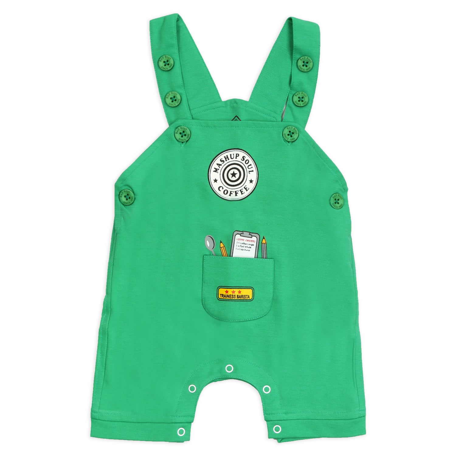 Brew up some cuteness with our Baby Barista set! Inspired by everyone's favorite coffee shop, this adorable outfit for ages 0-18 months includes a Starbucks-themed dungaree, cozy T-shirt, and matching cap. The dungaree features cute coffee cup and bean prints, adding a dash of charm and barista flair. Paired with a soft T-shirt for all-day comfort and a cap that completes the look, your little one is ready to serve up smiles. Perfect for casual outings or coffee dates with mom and dad, this unique outfit brings cozy, café-inspired vibes to your baby’s wardrobe. Latte style, extra cuteness!