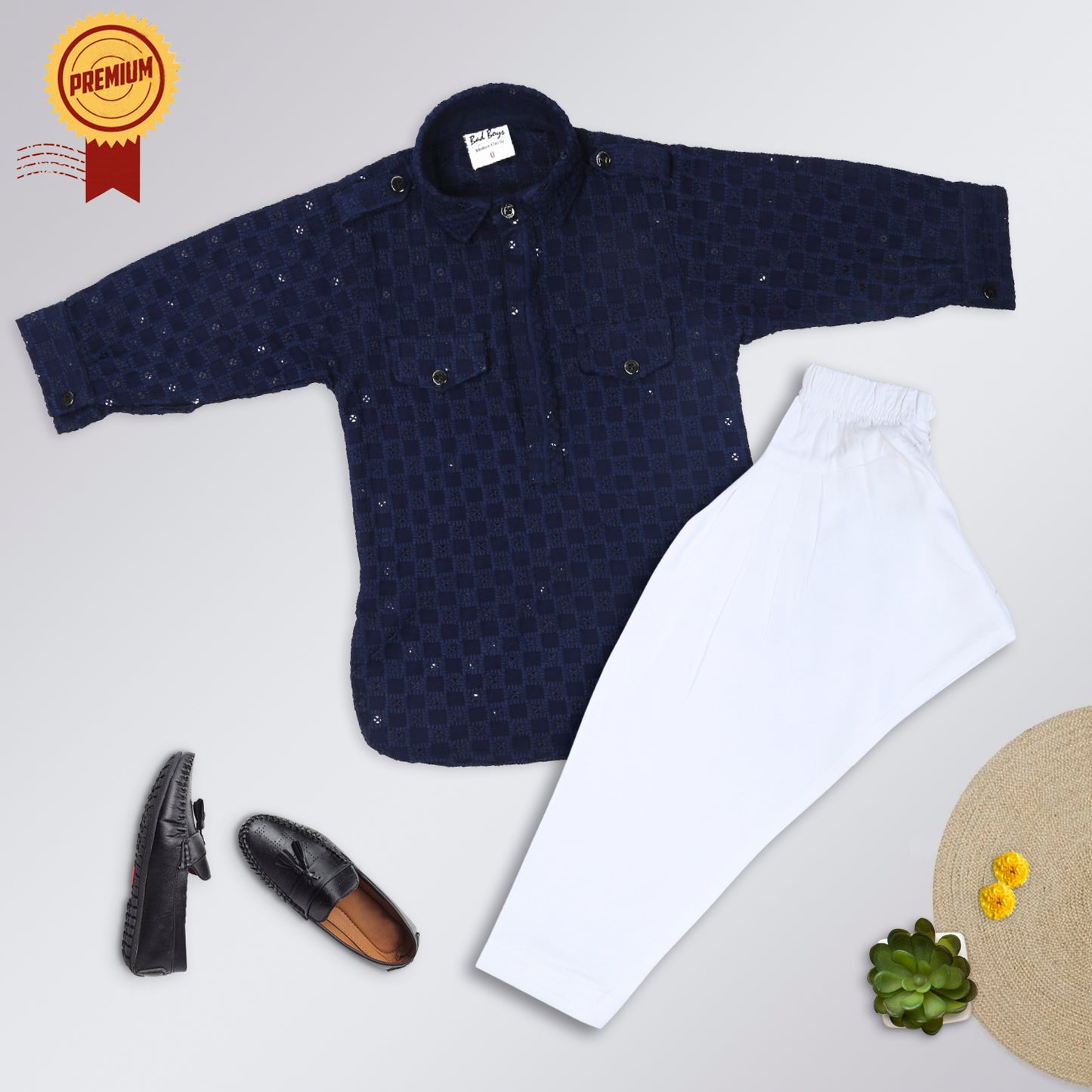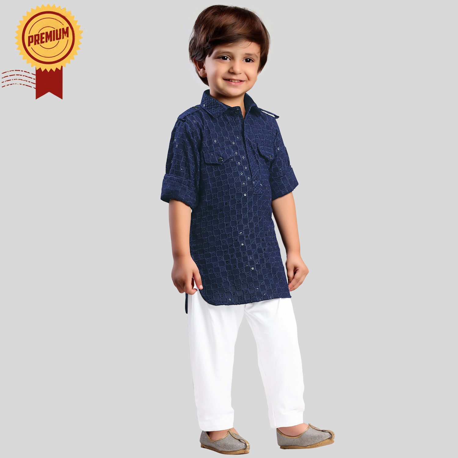 Shimmering Sequins: Little Dudes' Festive Bling - Kurta + Pajama!