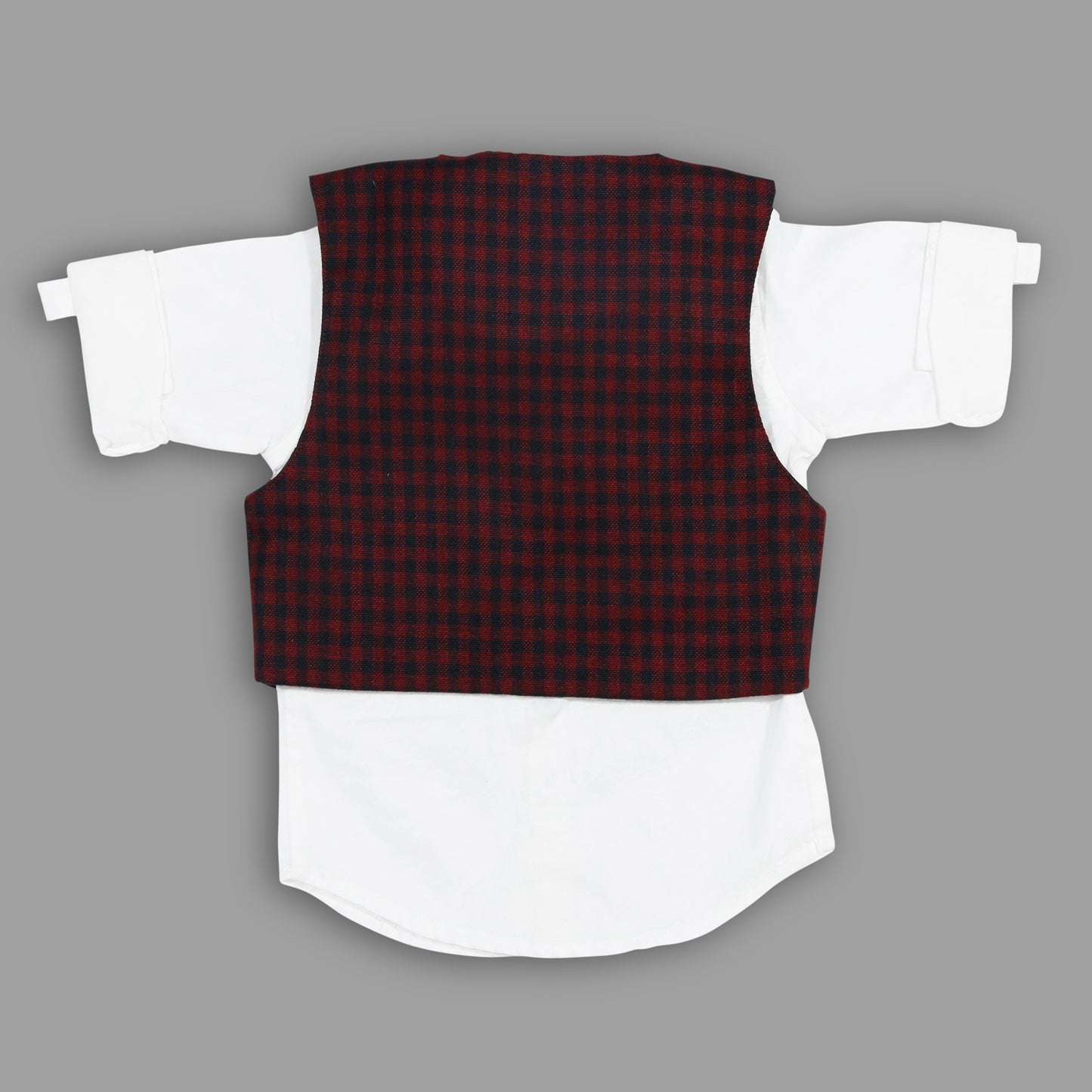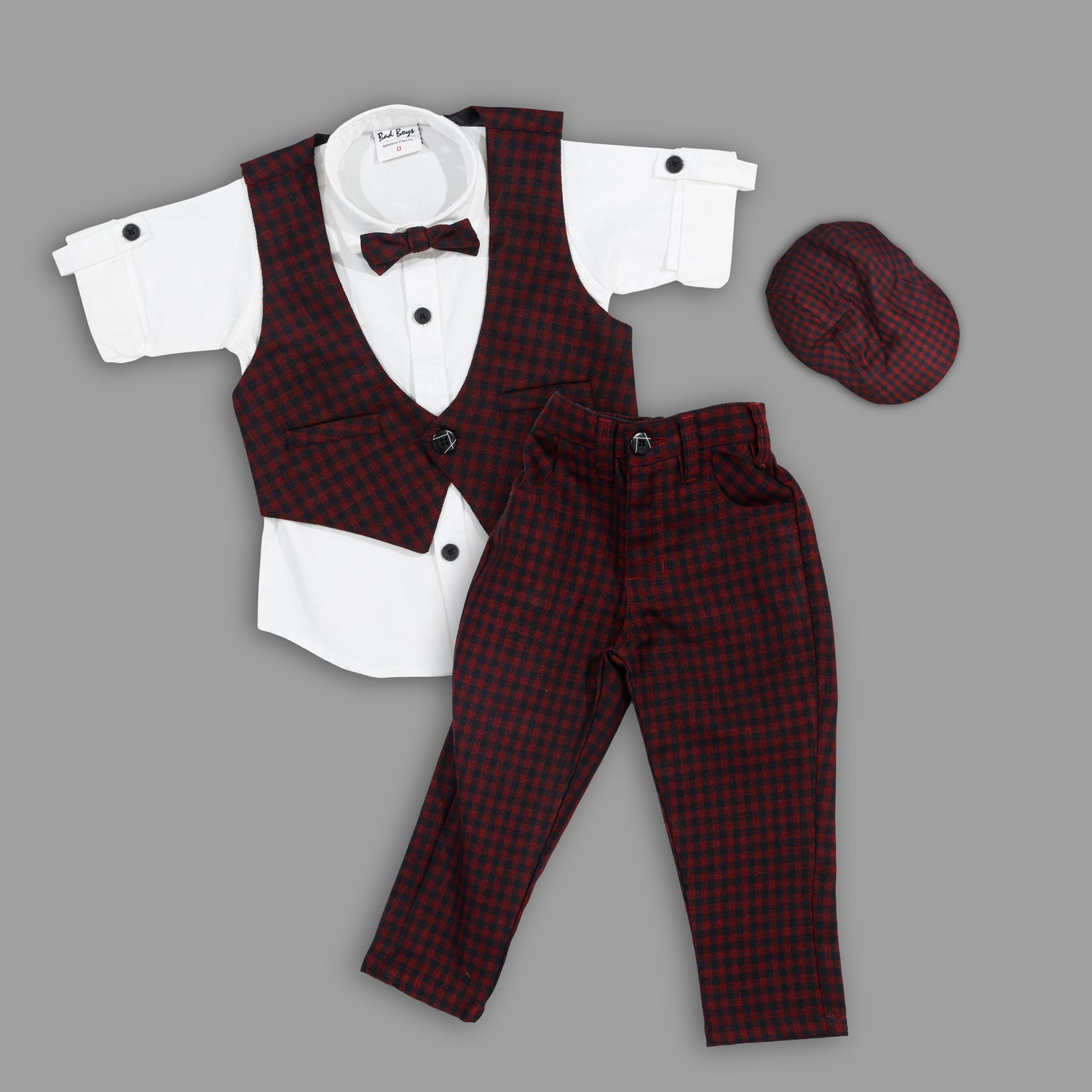 Set of 4 items: Includes a superior cotton shirt along with high quality plaid cotton bottoms,waistcoat and a cap.
