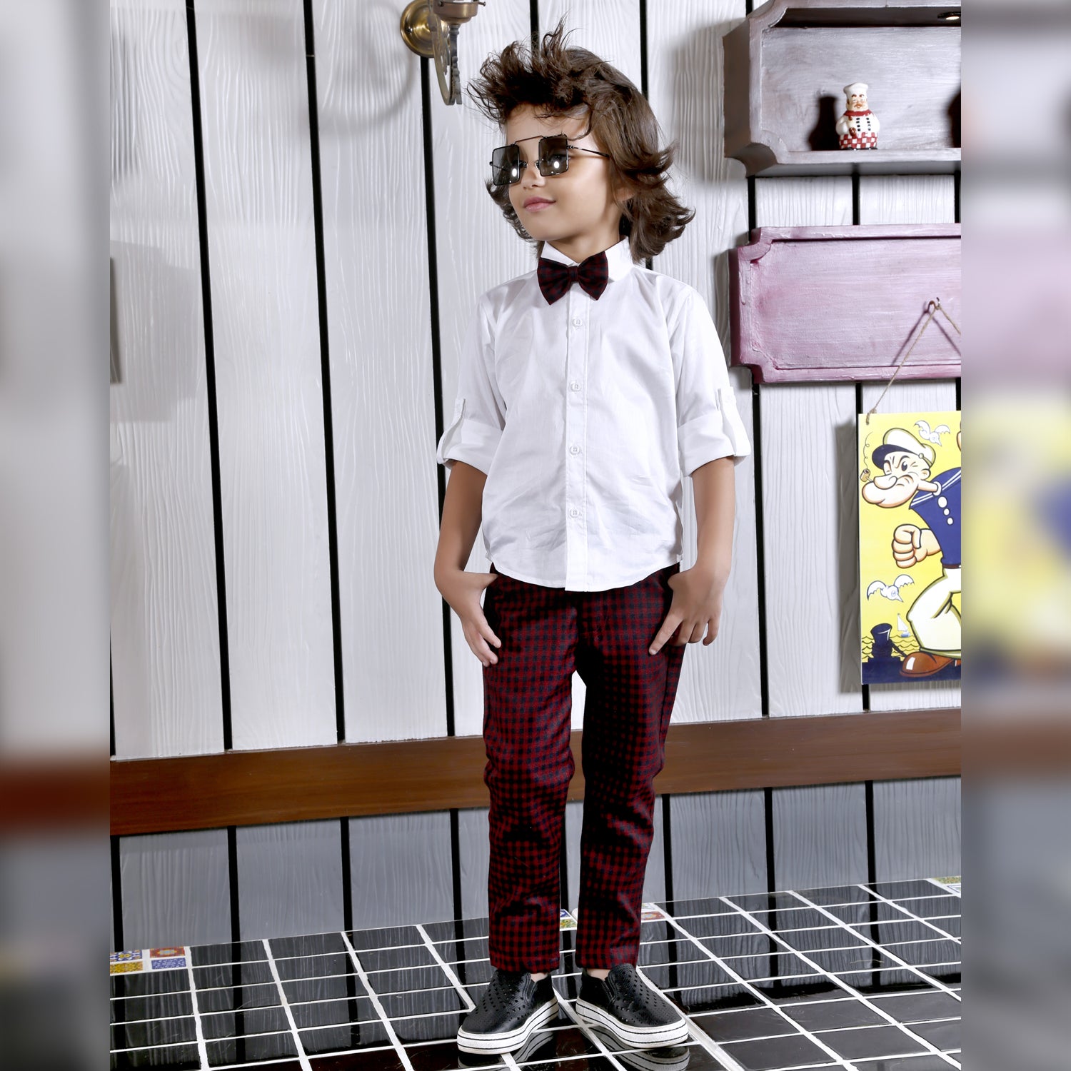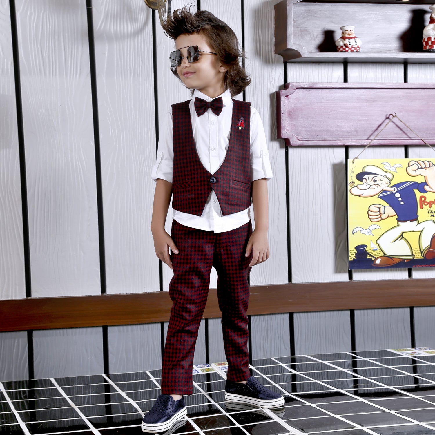 Bad Boys Party wear Outfits with Cotton shirt and Plaid Cotton Bottoms and Waistcoat