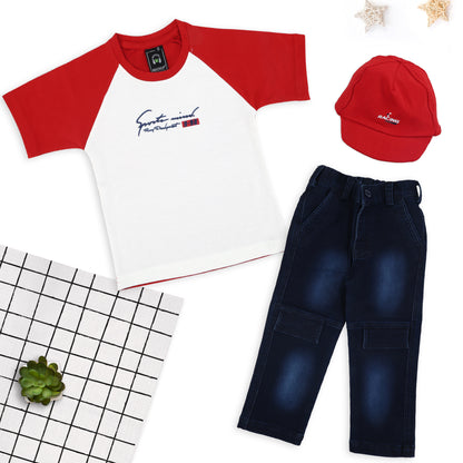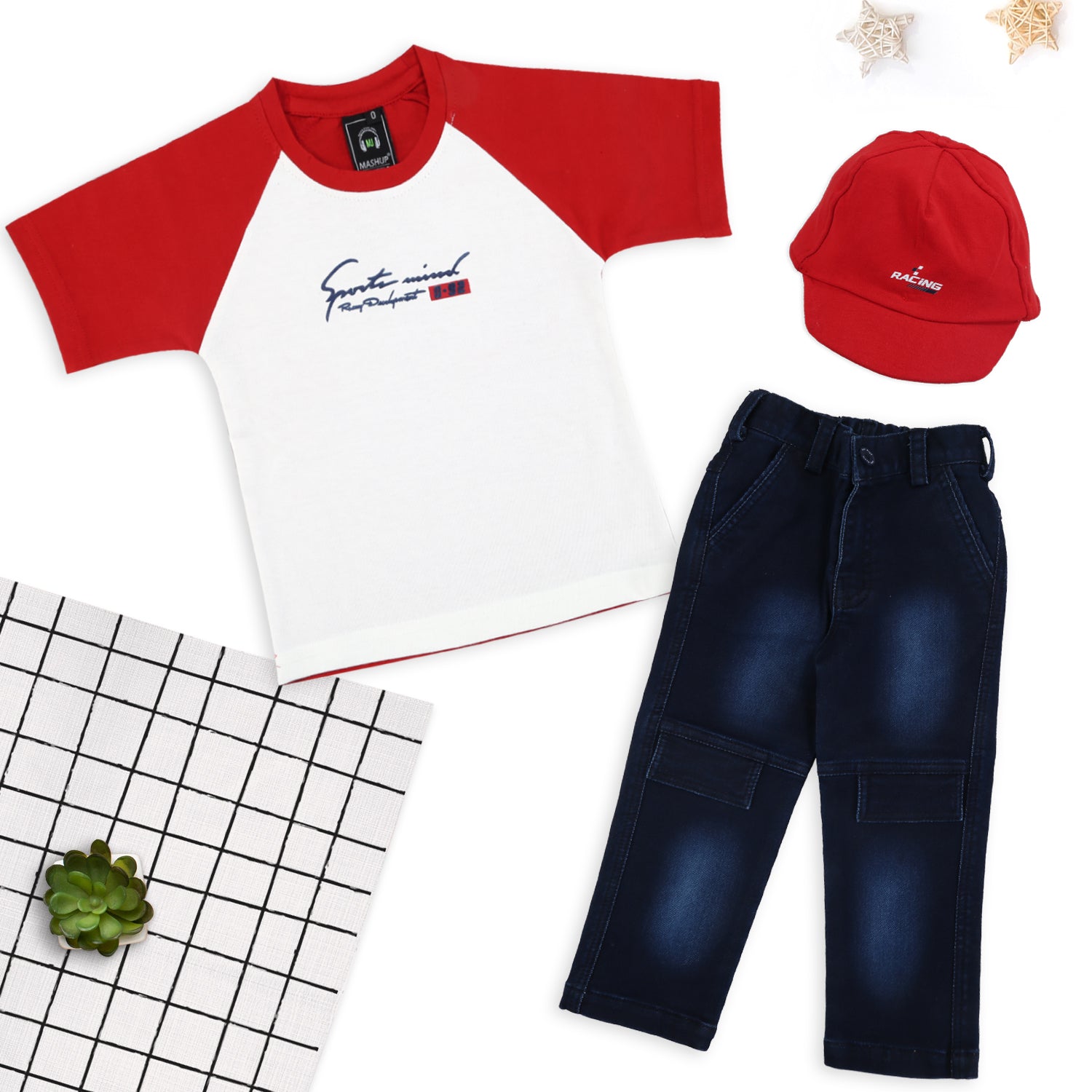 Fabric & finish: 100% Cotton T-shirt with Denim Jogger and a Cap.