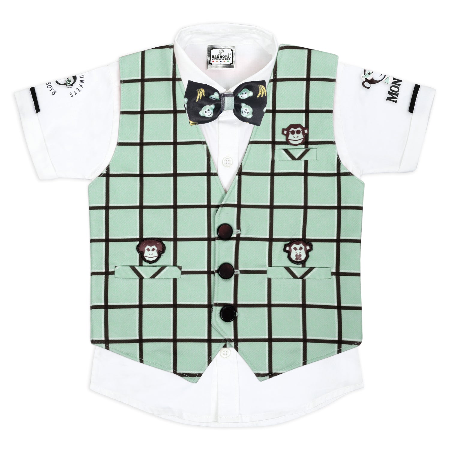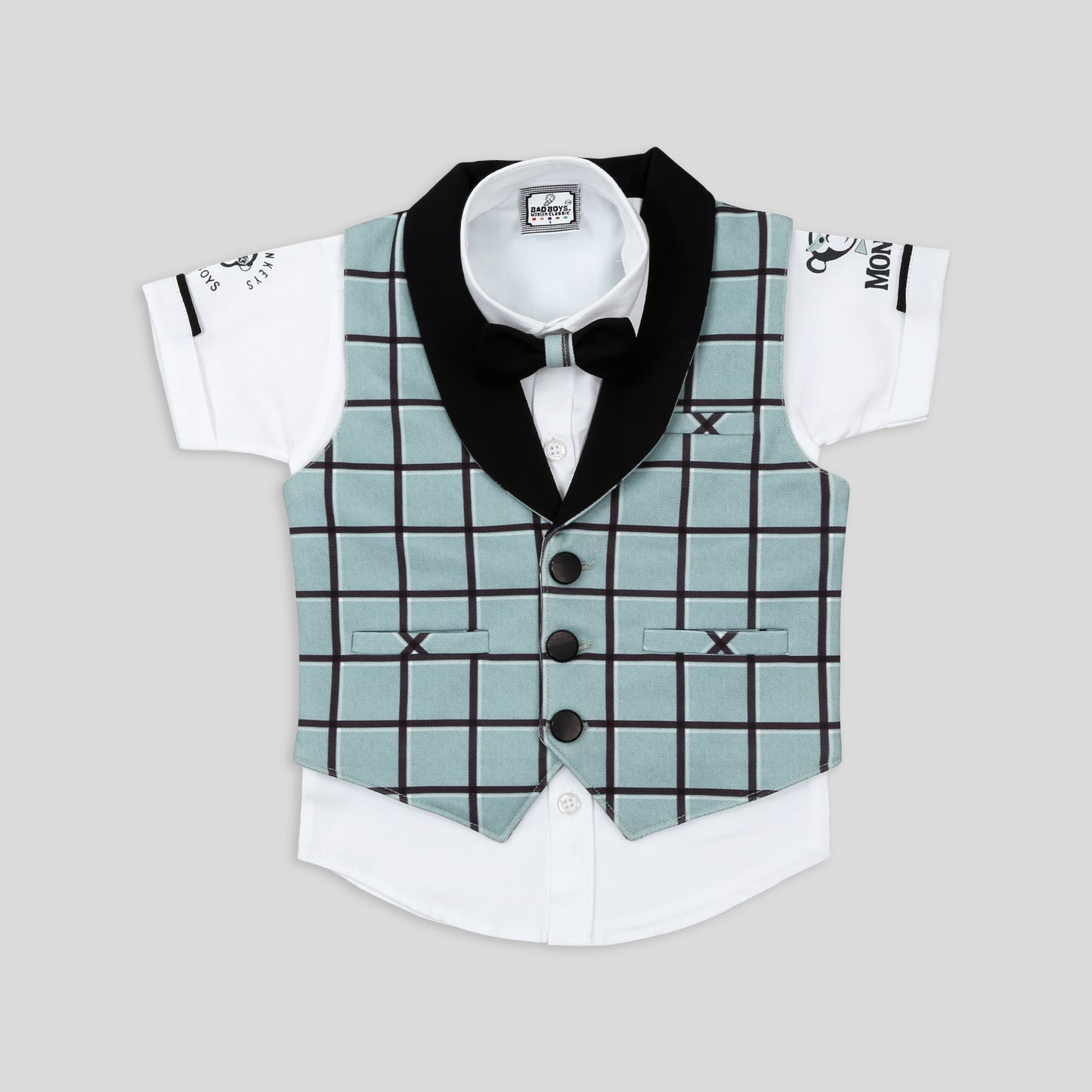 Dapper & Adorable: Checked Waistcoat Set with Bow Tie for Little Gents!