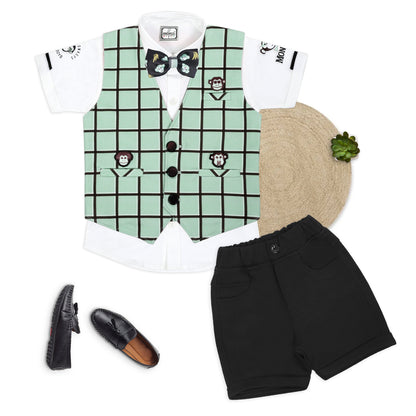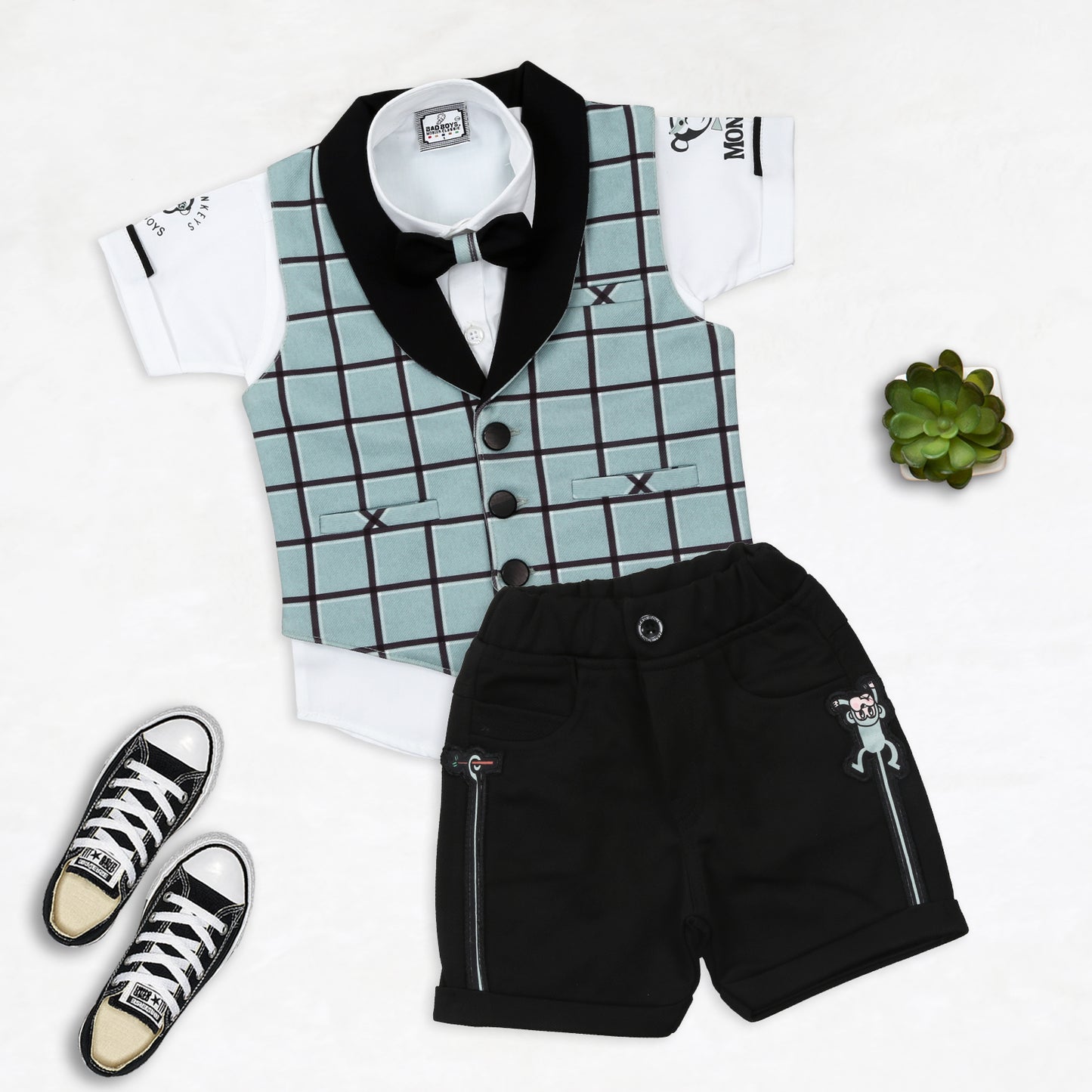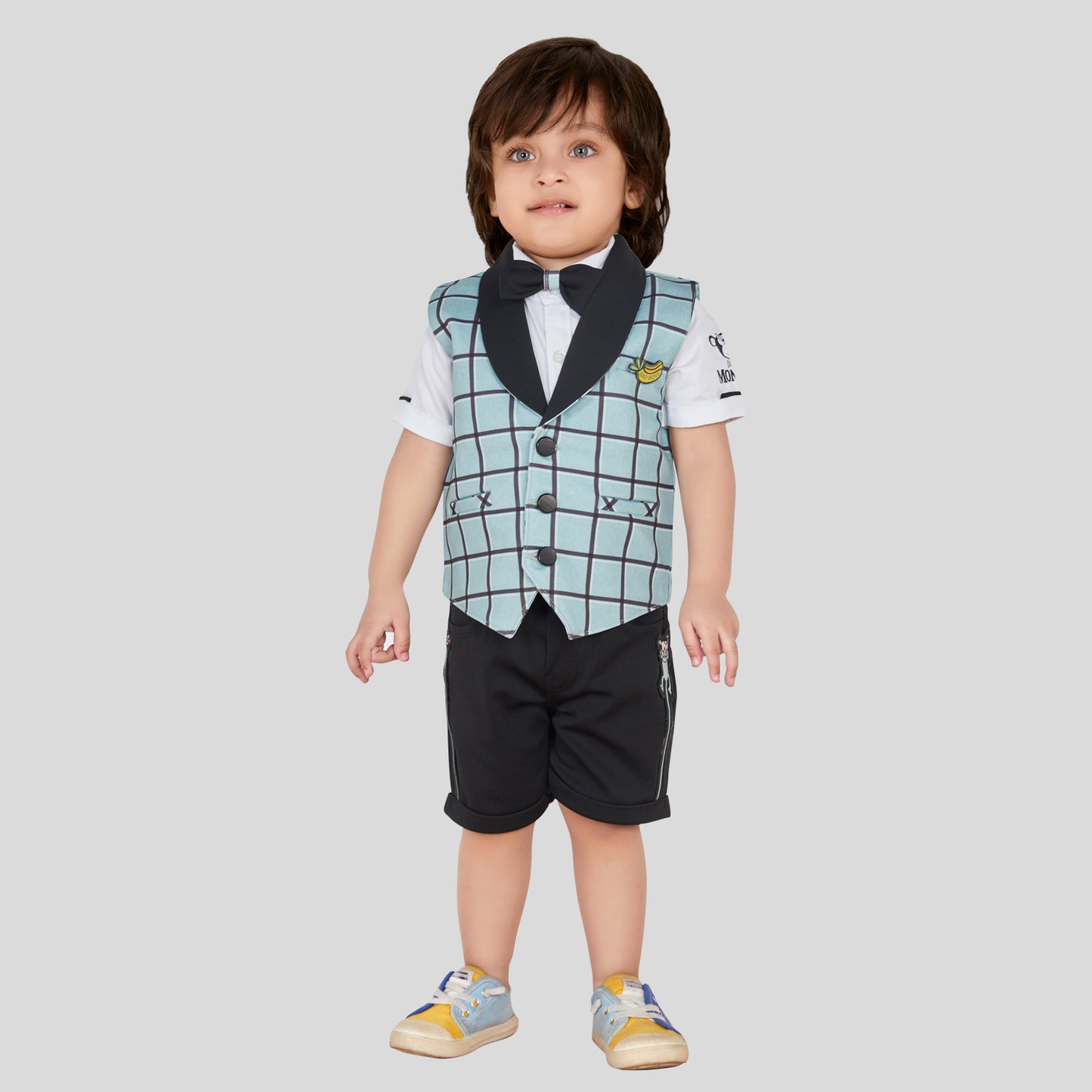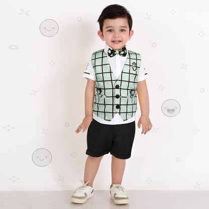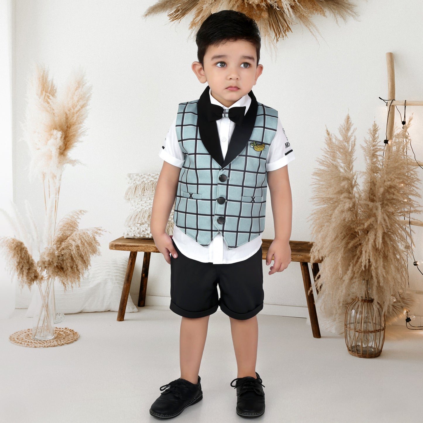 Make your little one the epitome of charm with our unique checked waistcoat set! This dapper ensemble includes a stylish checked waistcoat, a snazzy bow tie, and comfortable shorts, designed for boys aged 0-4 years. The combination of patterns and the addition of the bow tie adds a playful touch to their outfit, perfect for special occasions or simply embracing their inner gentleman. Watch their confidence soar as they strut their stuff in this fun and fashion-forward checked waistcoat set. Get ready for compliments and endless photo-worthy moments with this irresistibly adorable ensemble!