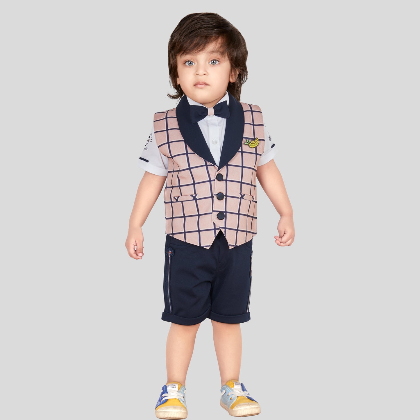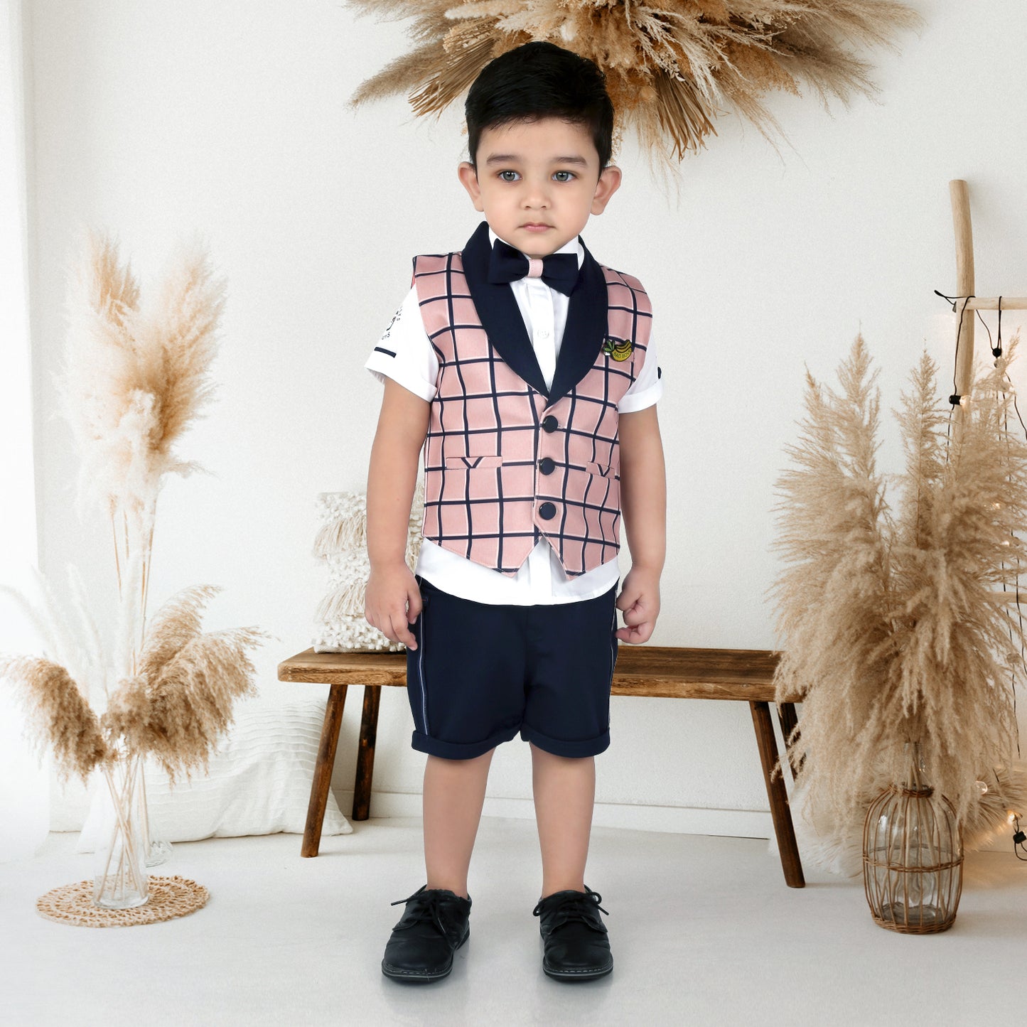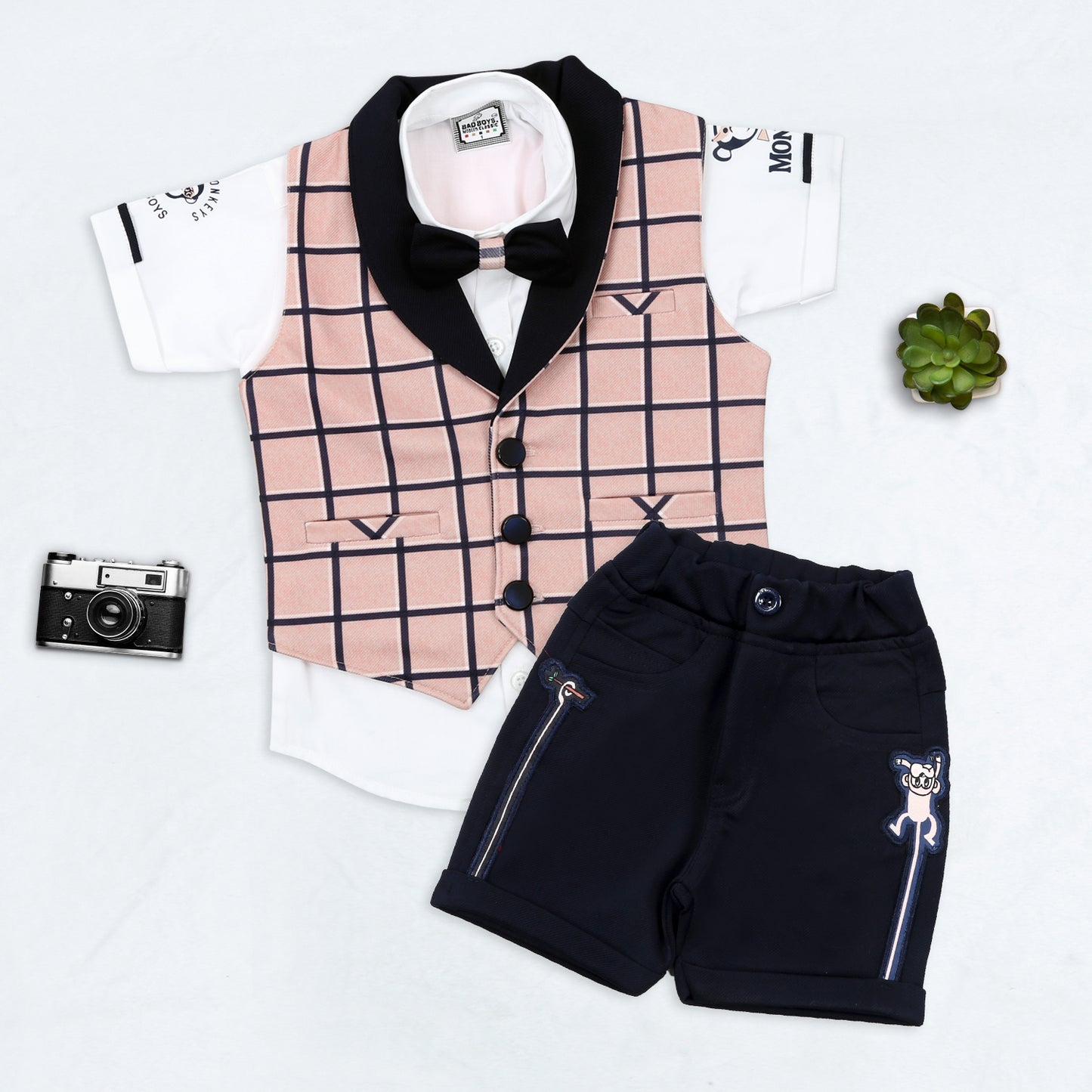 Make your little one the epitome of charm with our unique checked waistcoat set! This dapper ensemble includes a stylish checked waistcoat, a snazzy bow tie, and comfortable shorts, designed for boys aged 0-4 years. The combination of patterns and the addition of the bow tie adds a playful touch to their outfit, perfect for special occasions or simply embracing their inner gentleman. Watch their confidence soar as they strut their stuff in this fun and fashion-forward checked waistcoat set. Get ready for compliments and endless photo-worthy moments with this irresistibly adorable ensemble!