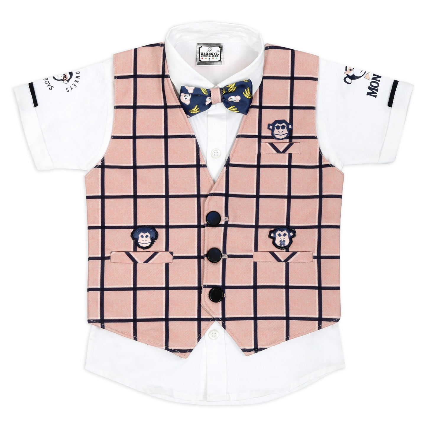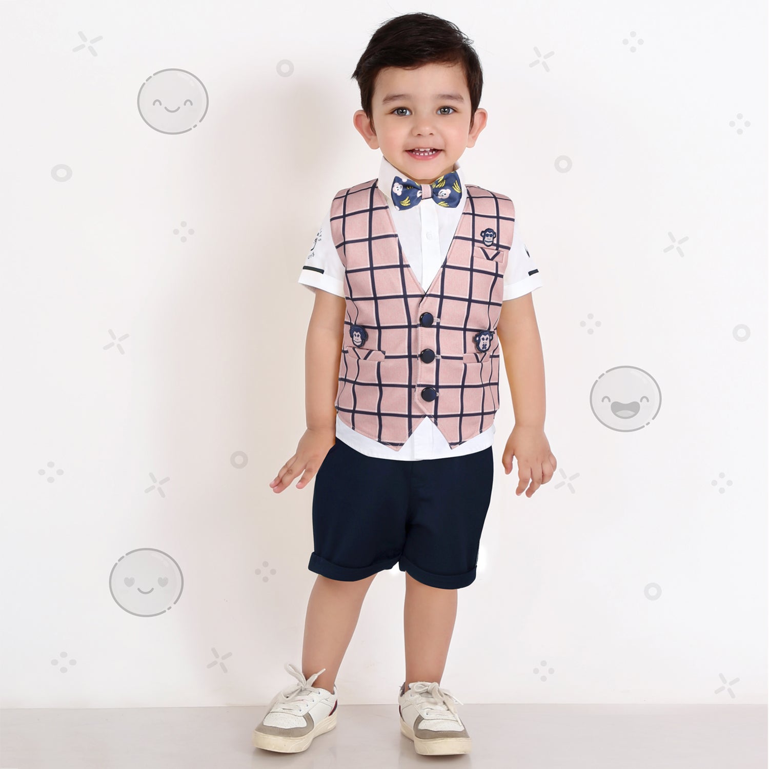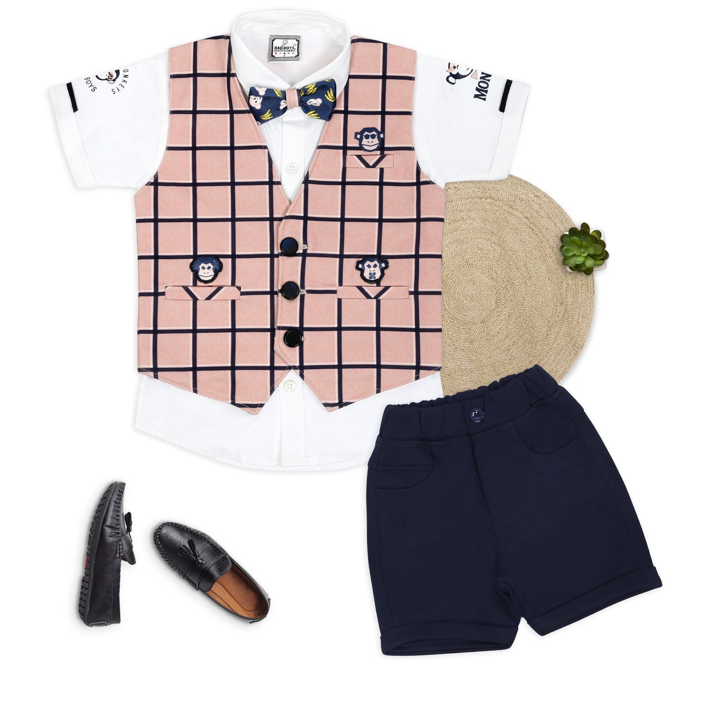 Make your little one the epitome of charm with our unique checked waistcoat set! This dapper ensemble includes a stylish checked waistcoat, a snazzy bow tie, and comfortable shorts, designed for boys aged 0-4 years. The combination of patterns and the addition of the bow tie adds a playful touch to their outfit, perfect for special occasions or simply embracing their inner gentleman. Watch their confidence soar as they strut their stuff in this fun and fashion-forward checked waistcoat set. Get ready for compliments and endless photo-worthy moments with this irresistibly adorable ensemble!