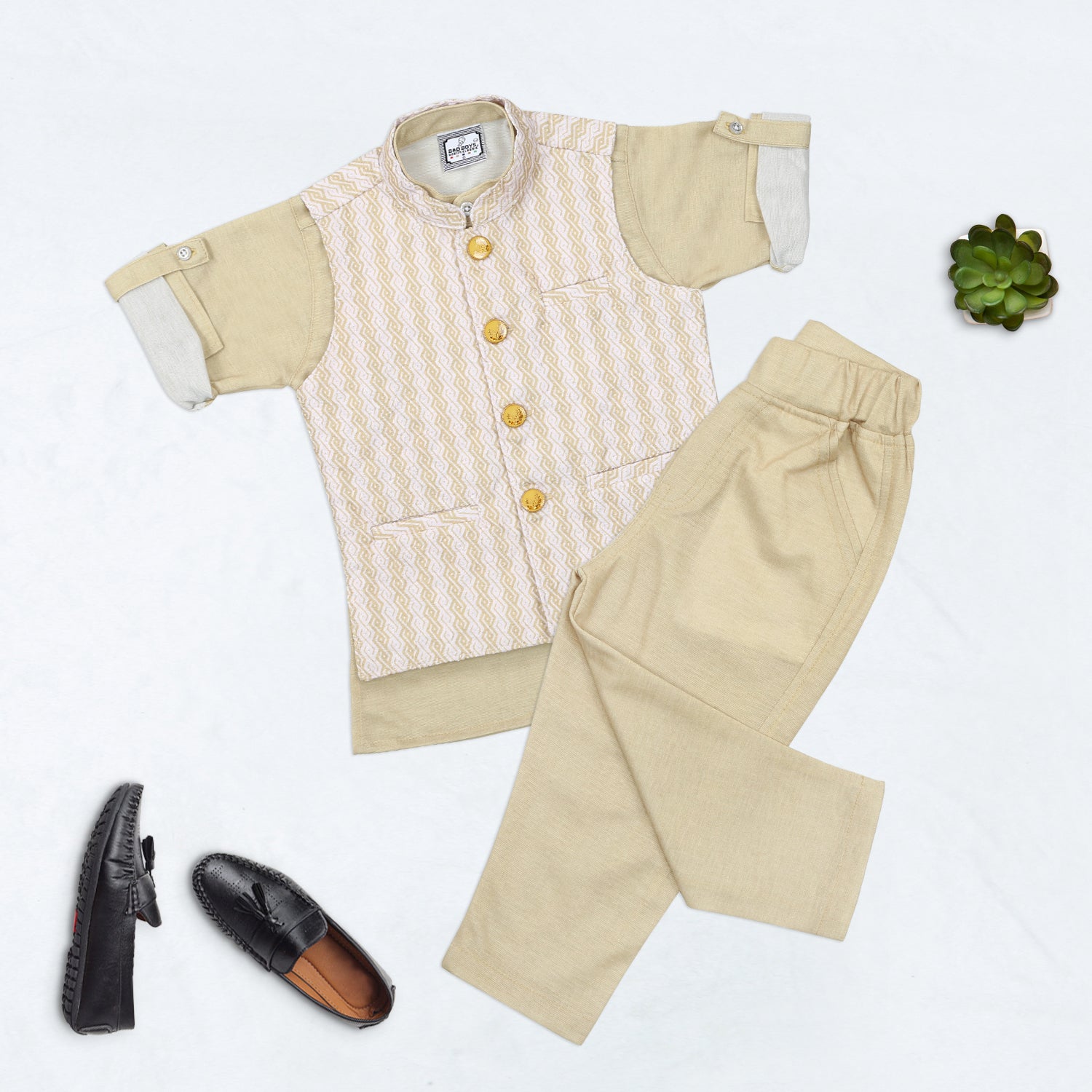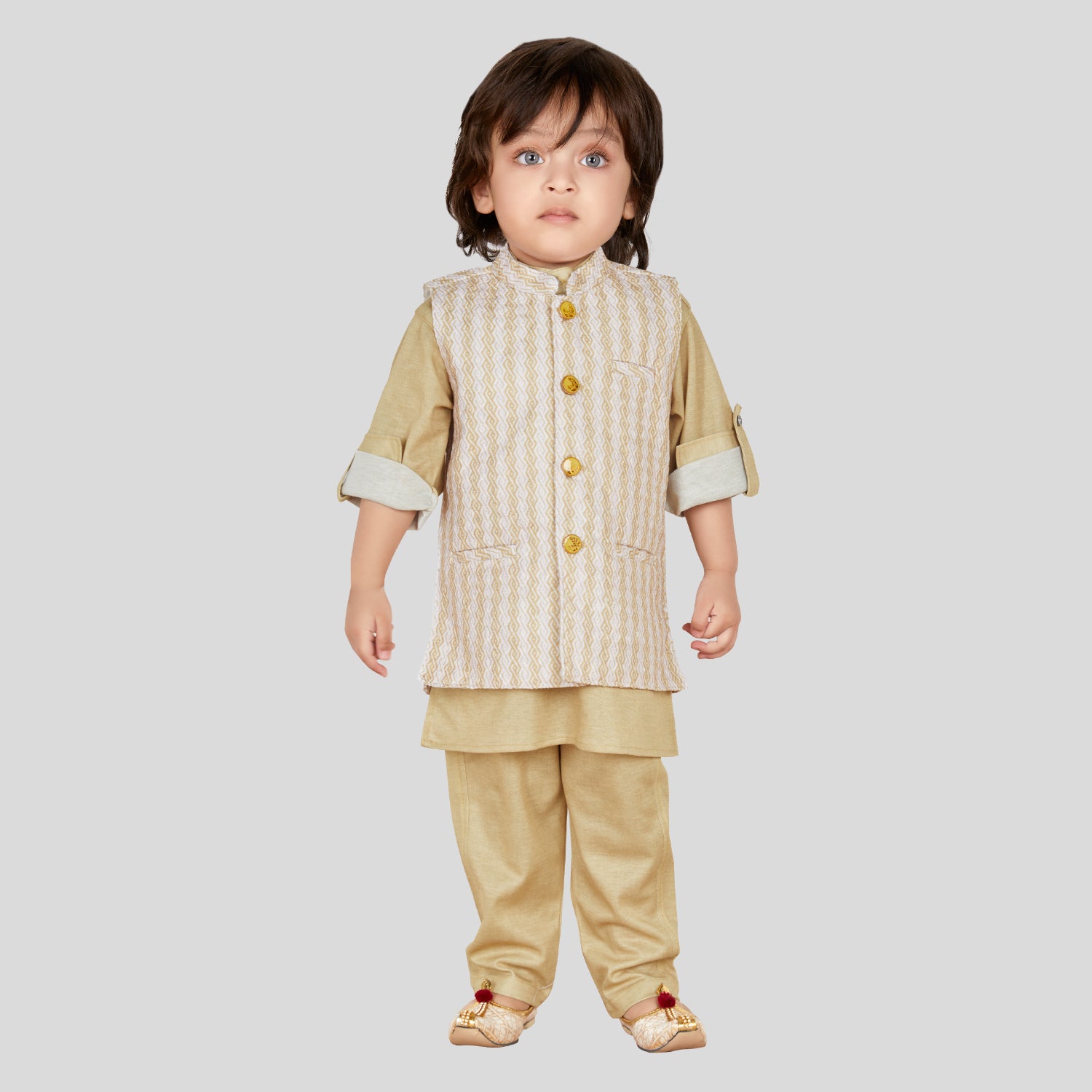 Little Legends Shine: Plain Kurta + Designer Waistcoat + Pajama!