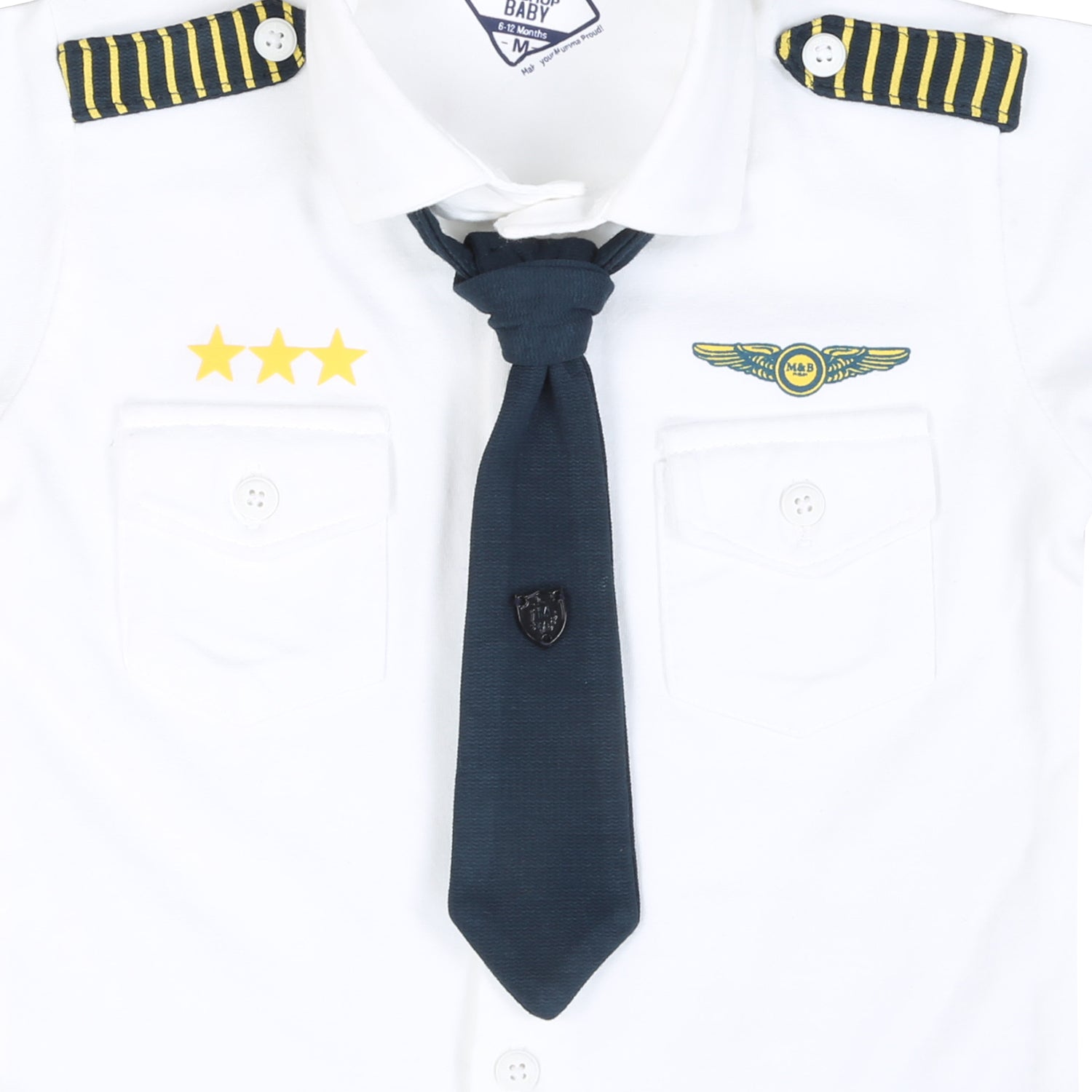Get ready for takeoff with our Little Aviator set! Designed for babies aged 0-18 months, this adorable pilot-inspired outfit includes a crisp shirt, matching shorts, a playful tie, and a stylish cap. Perfect for casual outings, this set brings fun and adventure to your baby’s wardrobe. The shirt features cute pilot badge details, while the tie adds a touch of charm, making your little one look like they’re ready to fly the skies. The comfy shorts allow for easy movement, and the cap completes the look with extra cuteness. Ideal for family outings or a fun day out, this outfit is sure to make your baby the cutest captain around!