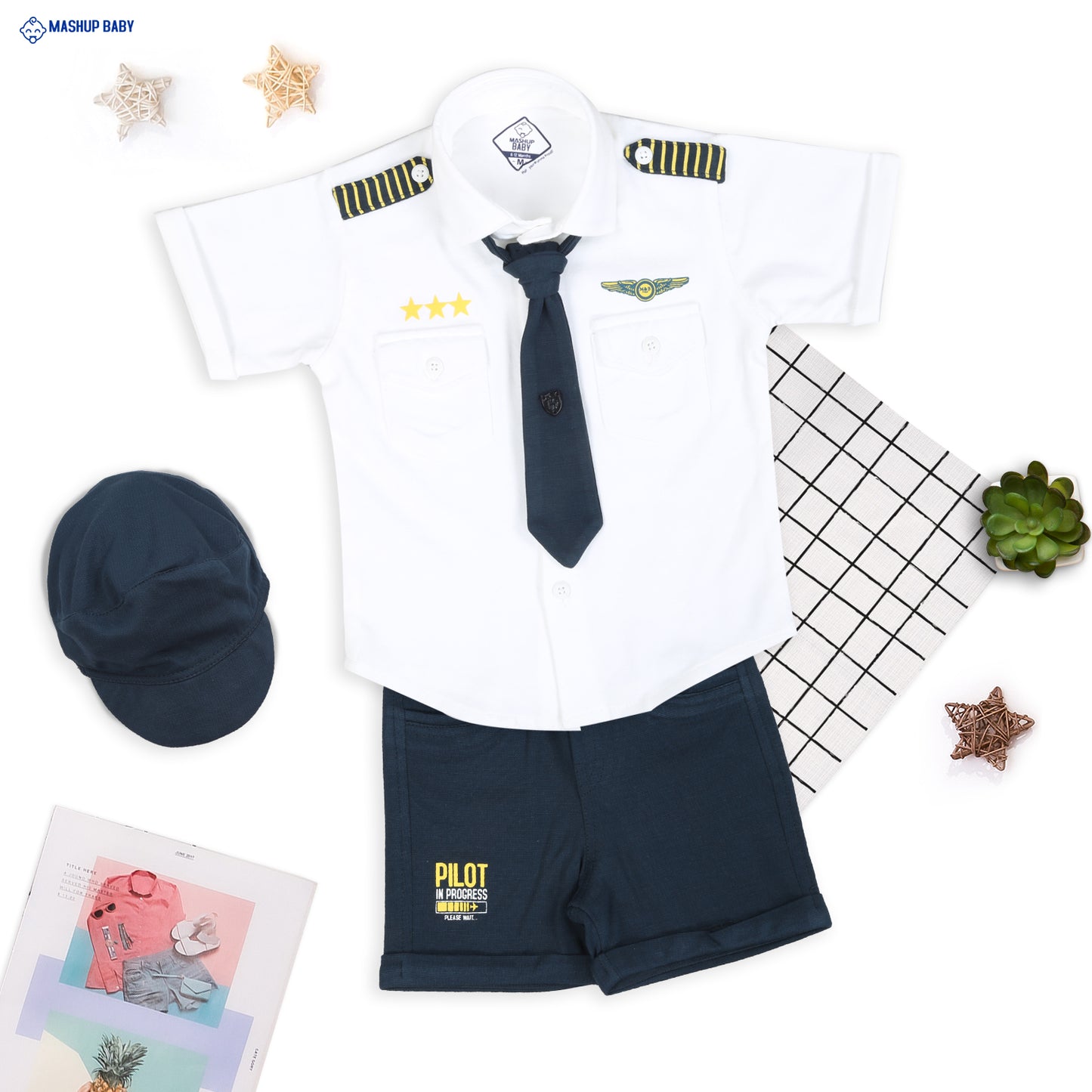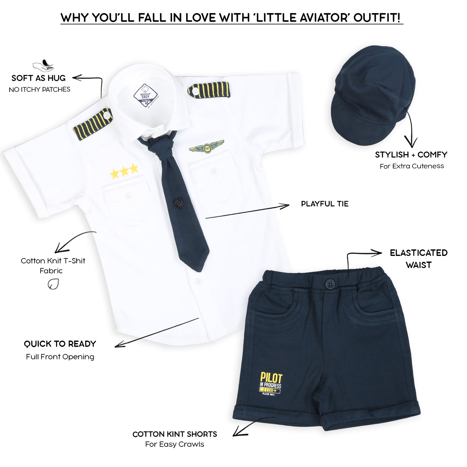 "Little Aviator: Pilot Shirt, Shorts, Tie, and Cap Set!"