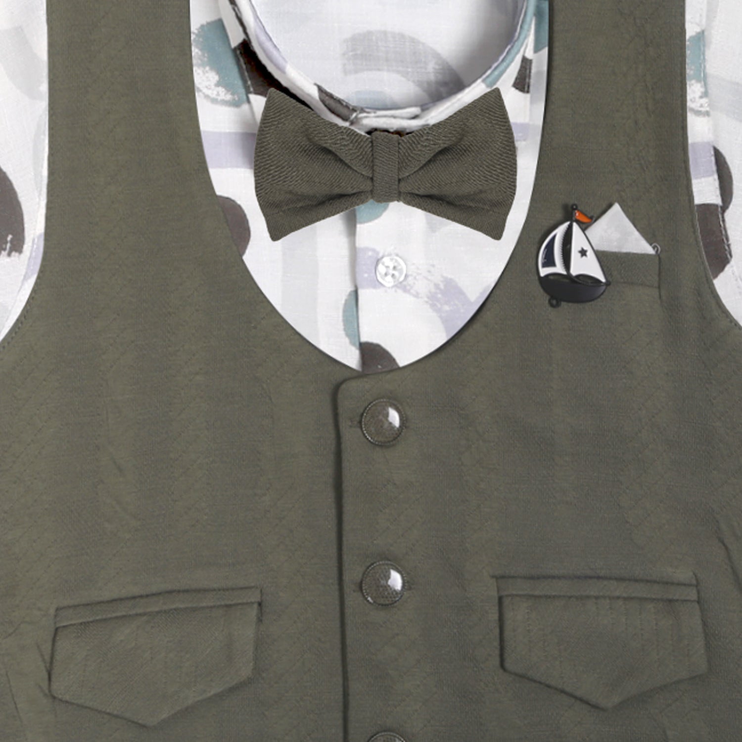 Little Gentleman Party Set with Printed Shirt Waistcoat Charm Bow
