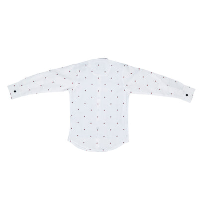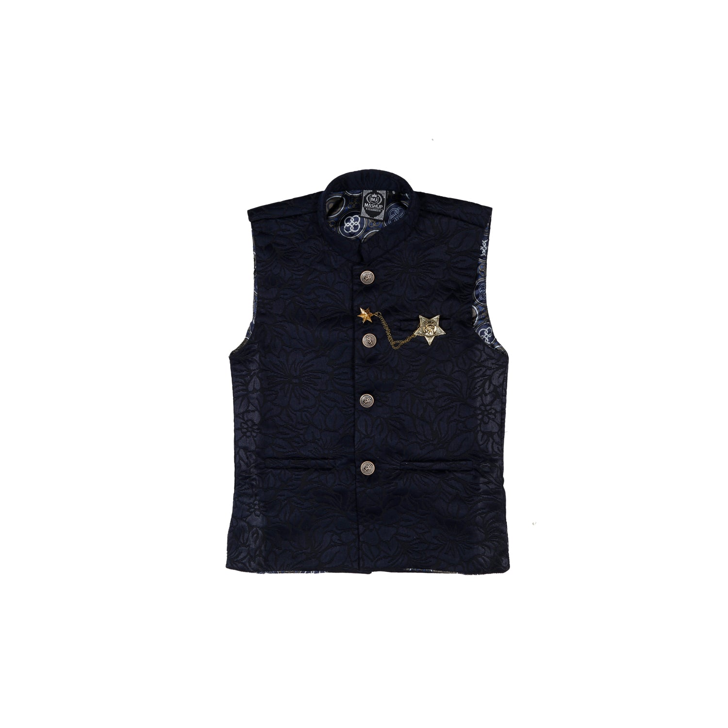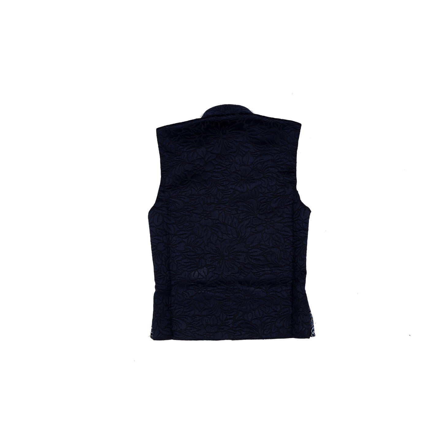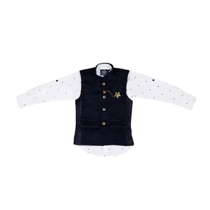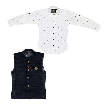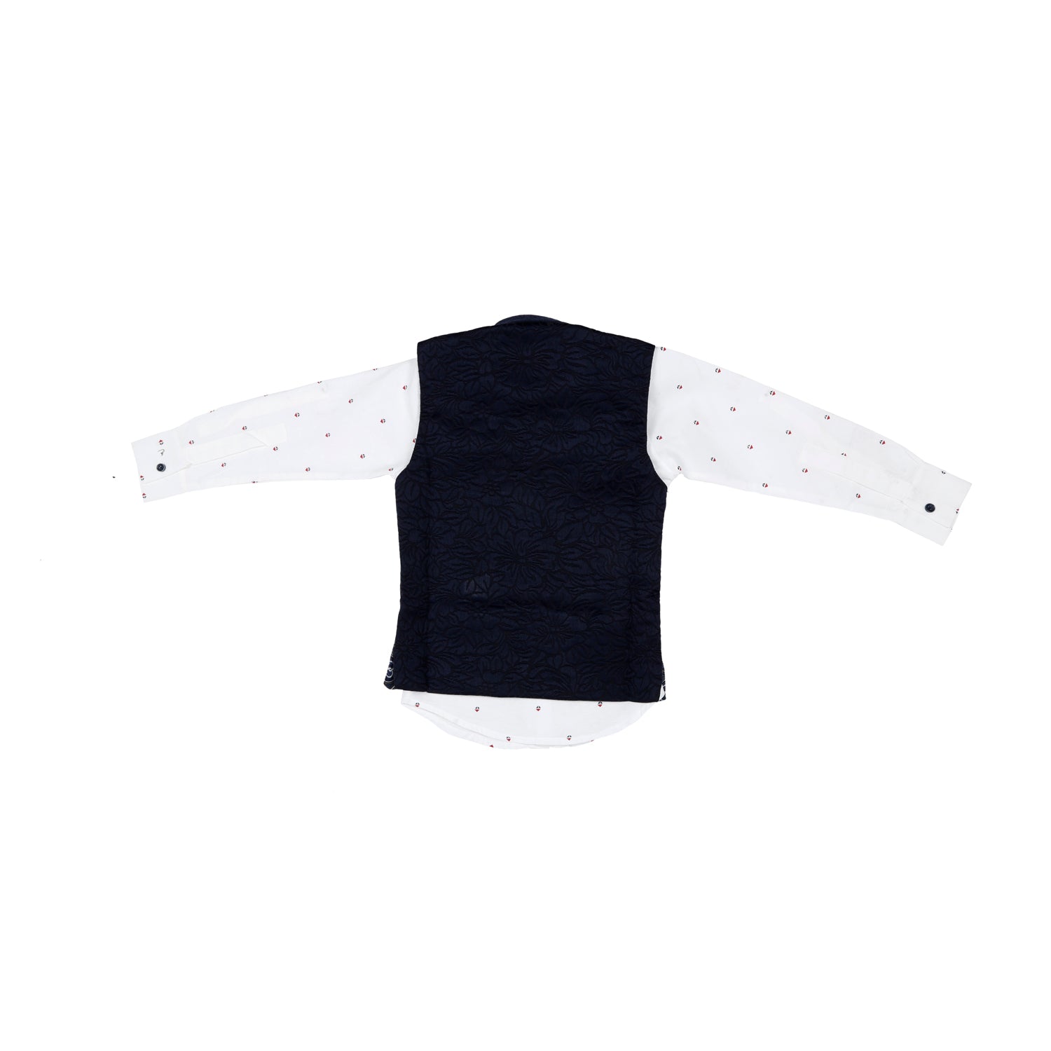 Let your son make a style statement at the next party in this trendy triangle print shirt and leaf brocade waistcoat from MashUp. Feel & fabric: *Made from skin friendly cotton fabric to ensure your boy's comfort all day. Actual Colour: Waistcoat- Navy Blue, Shirt- White. Ideal Occasion: birthday parties, informal get-togethers and other festive. Style Tip: Complete the look with a pair of casual loafers for a stylish look. Care Tip: Gentle hand/machine wash in cold water. Dry in shade. Size guide: