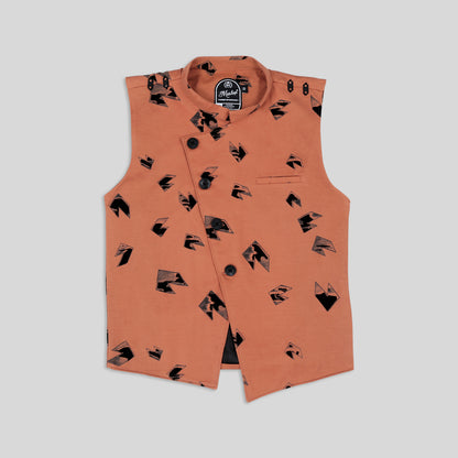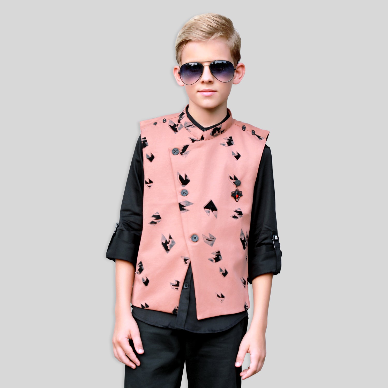 Make your outings and parties stylish yet fun with this printed jacket set for young boys.