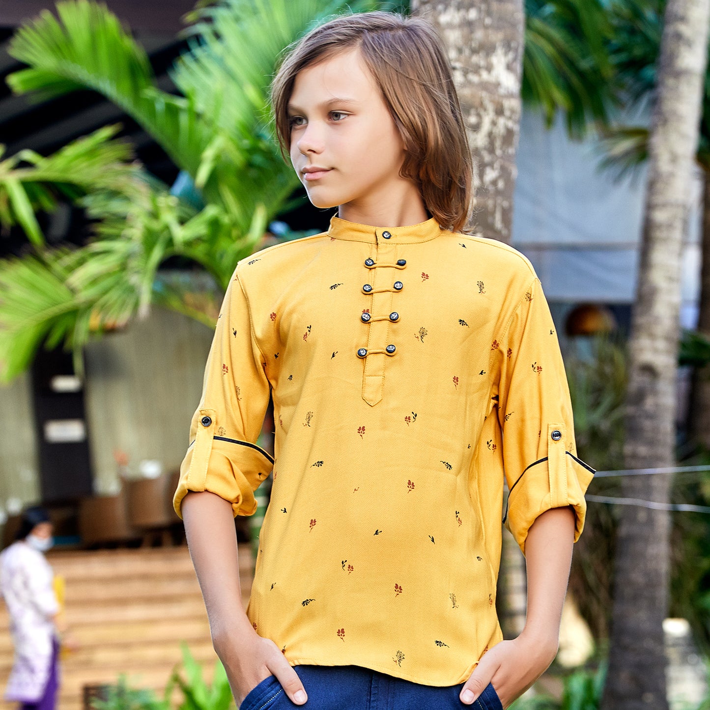 Fashionable Printed Cotton Dobby Kurta For Young Boys.