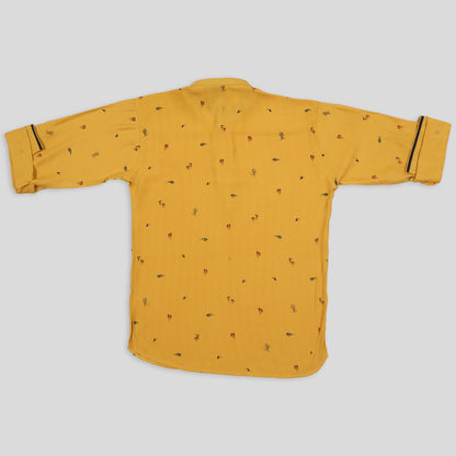 This full-sleeved all over printed kurta with turn-ups and designer standing collar is a great pick for formal as well as casual occasions. Made from premium quality cotton fabric and finished with a lot of care and detail.